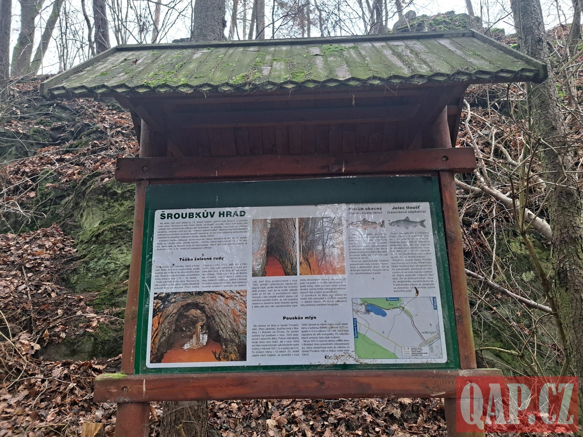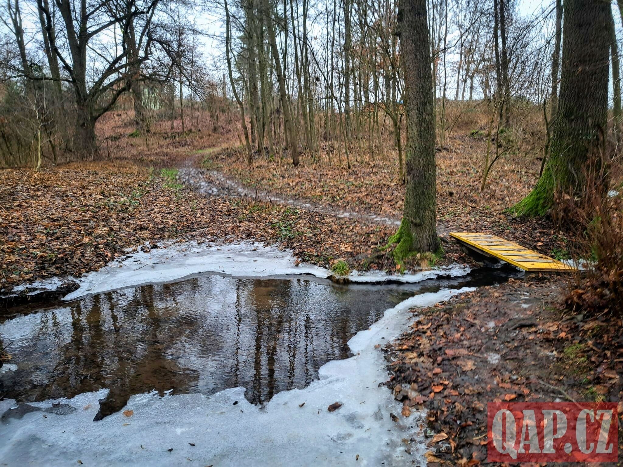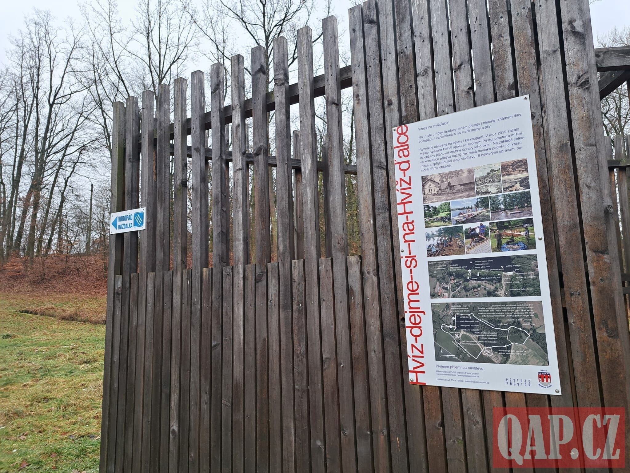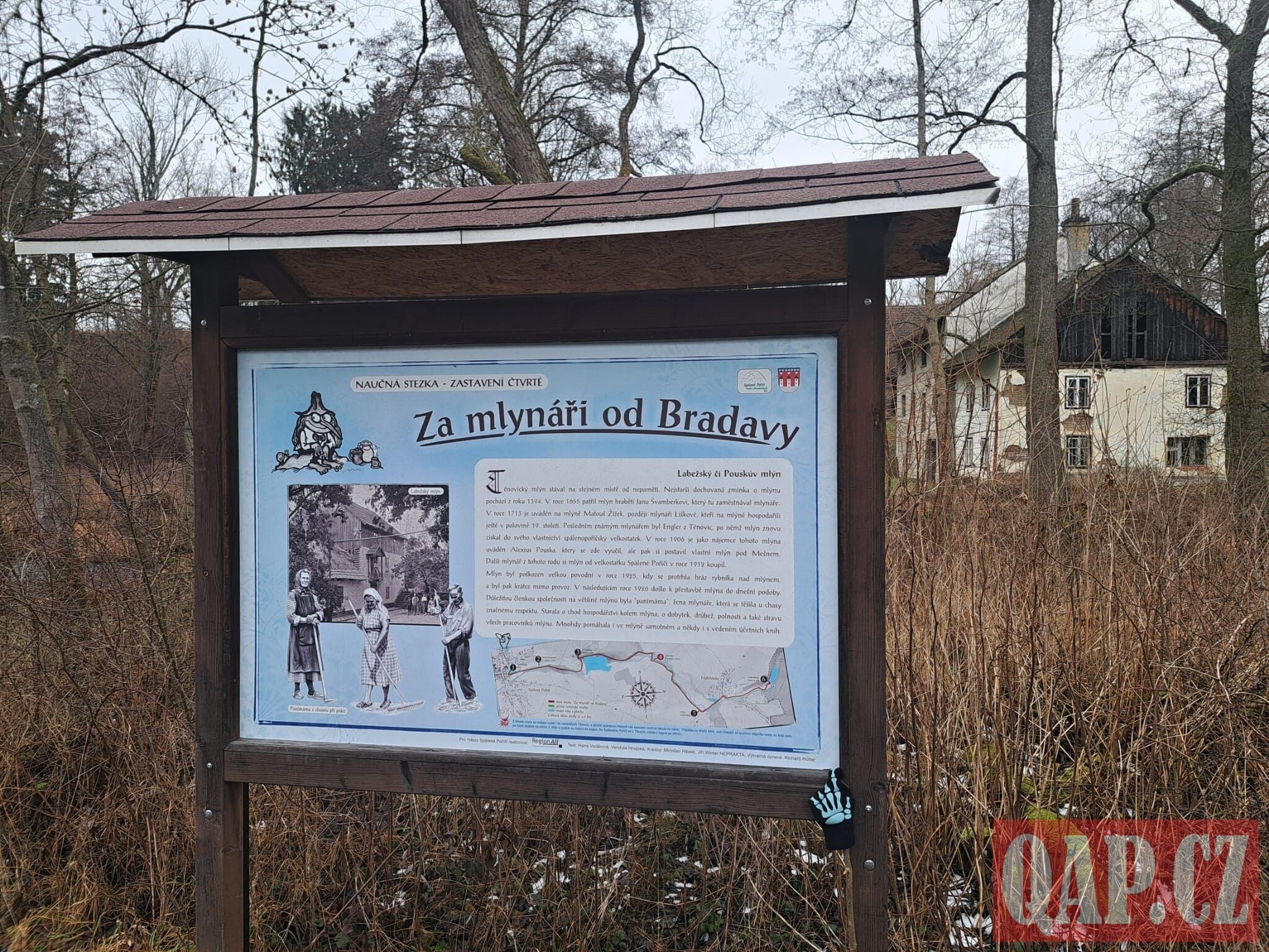 U Labežského mlýna se asfalt mění v měkkou lesní cestu, která se vine pod zříceninou tvrziště Šroubkův hrad. V těchto místech je krásně vidět, jak se koryto Bradavy rozlévá do krajiny a volně přechází v hladinu rybníka Hvížďalka. My jsme výlet podnikli v mrazivém počasí, což mělo své kouzlo – zamrzlá voda v kombinaci s okolní přírodou vytvářela opravdu hezké pohledy.
