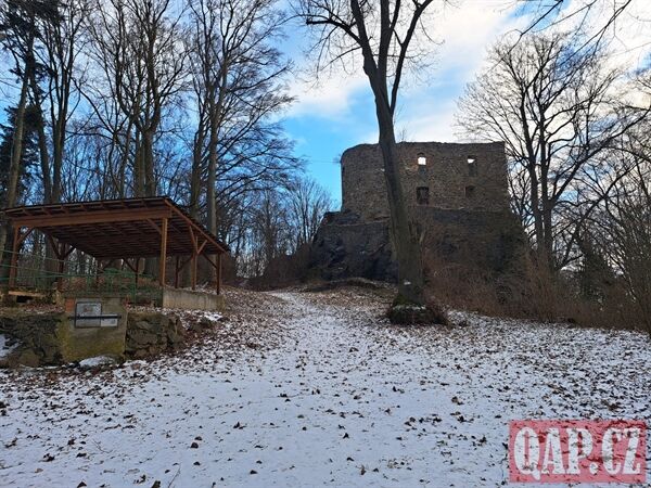 Výlet začíná na autobusové zastávce v obci Vlčtejn, odkud je to ke stejnojmenné zřícenině hradu Vlčtejn zhruba půl kilometru pohodové chůze. Hrad sice není veřejnosti běžně přístupný, ale jeho okolí vybízí k zastavení. Nechybí zde posezení a krásný výhled na hrad, který pochází ze 13. století.