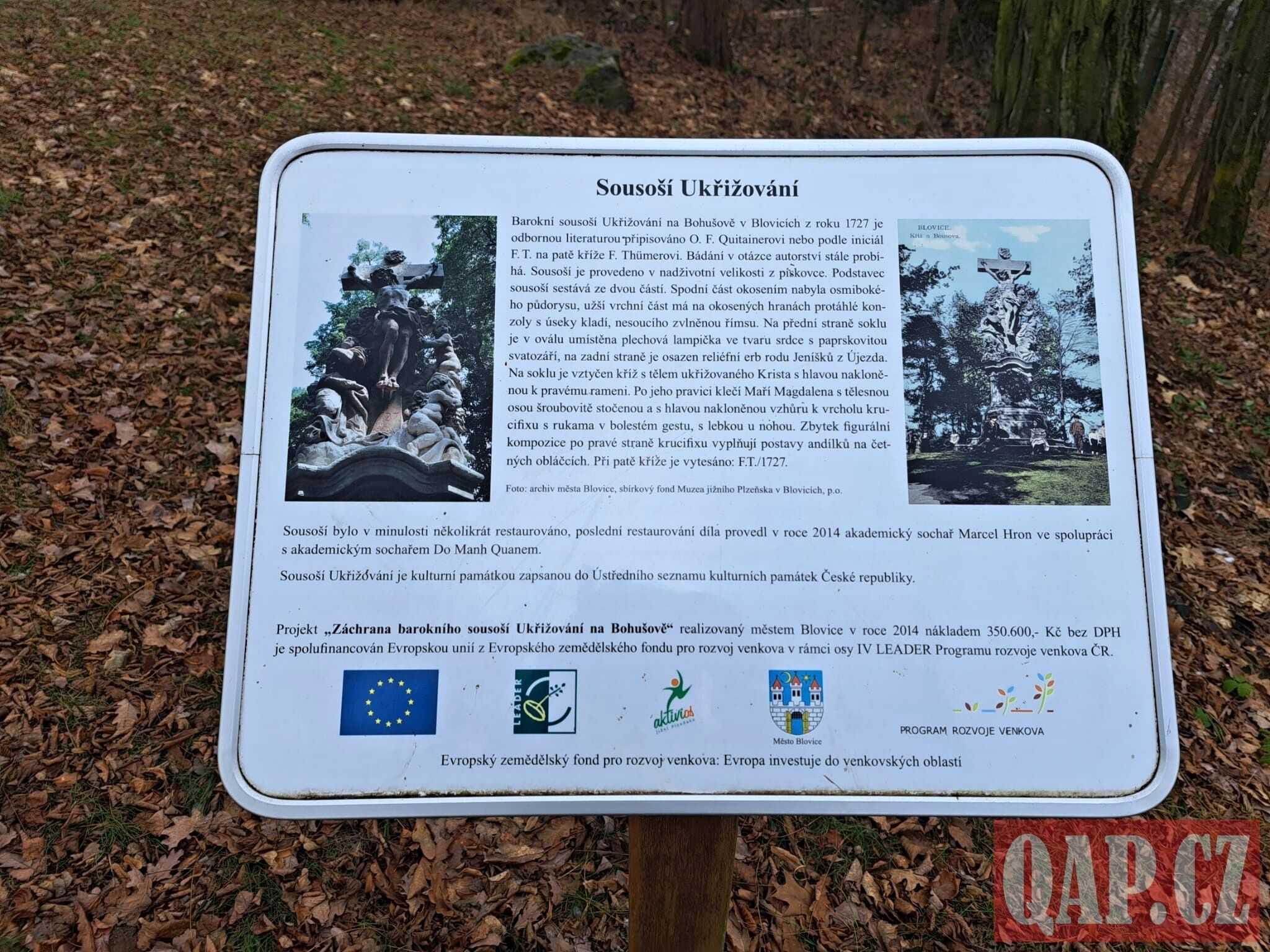 V samotných Blovicích stojí za návštěvu park podél řeky Úslavy s pomníkem T. G. Masaryka a především barokní sousoší Ukřižování na návrší směrem na Hradišťský Újezd. Sousoší nadživotní velikosti z pískovce patří mezi umělecky velmi cenné památky a je chráněno už od roku 1958.
