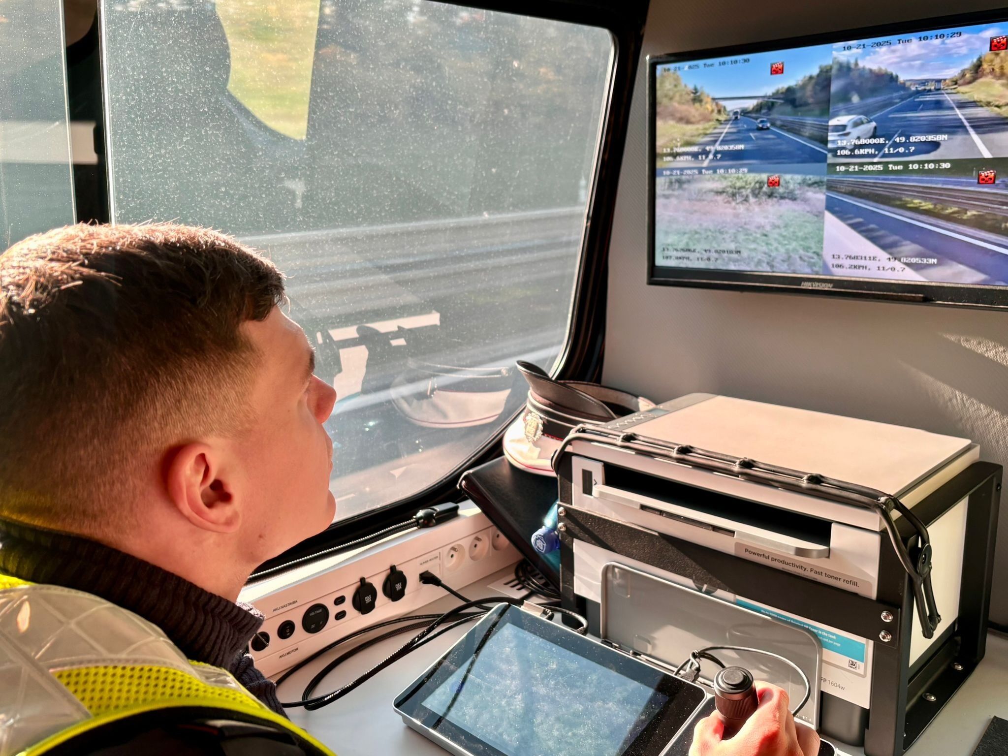 Na dálnici D5 v Plzeňském kraji proběhla v úterý 21. října speciální dopravní kontrola zaměřená na věnování se řízení. Do akce se zapojila i hlídka speciálního silničního dohledu (SOD) z Ředitelství služby dopravní policie, která využila unikátní policejní dodávku.