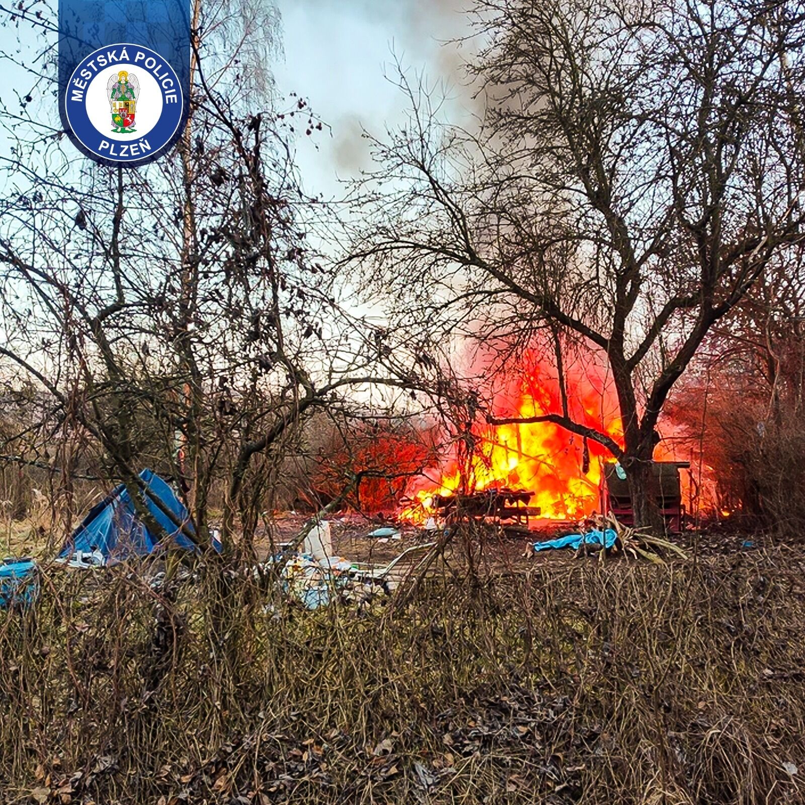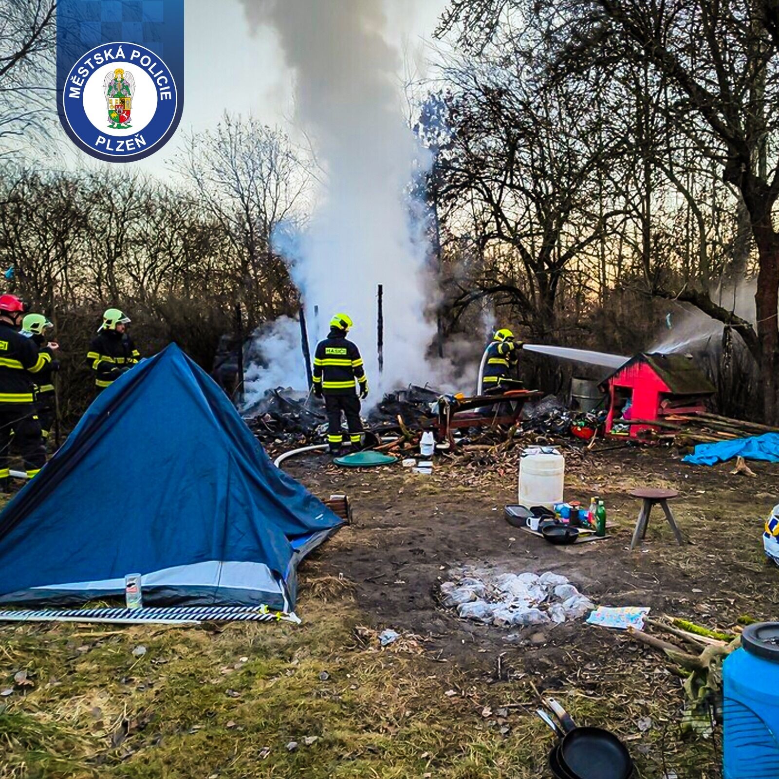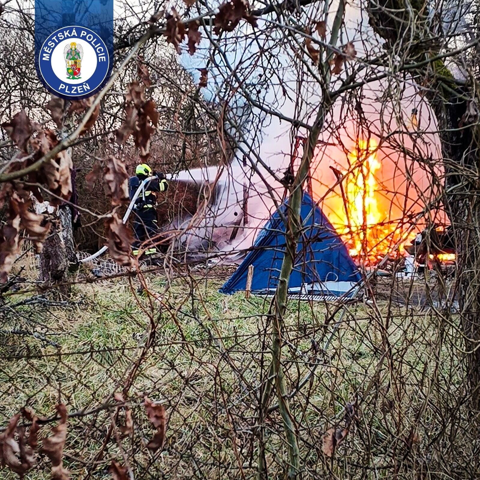 „Po příjezdu k prostoru psího cvičiště si strážníci všimli hustého černého kouře stoupajícího ze zahrádkářské kolonie a okamžitě se vydali na místo. Po doběhnutí zjistili, že hoří malá chatka, kterou využívají osoby přespávající v této lokalitě. Požár byl již v plném rozsahu,“ popsala mluvčí Městské policie Plzeň Tereza Weidl.