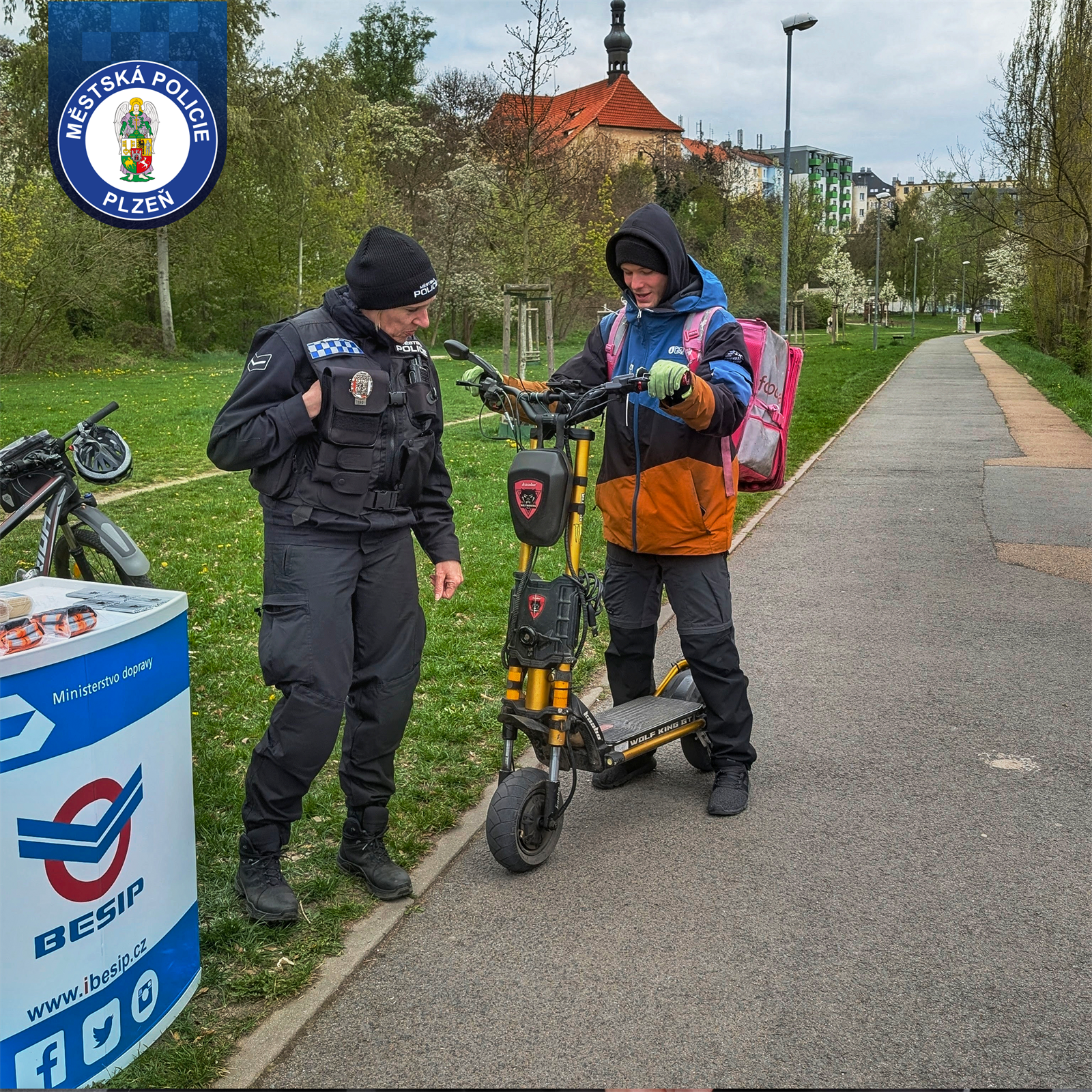 Strážníci plzeňské městské policie si v úterý 21. dubna spolu s koordinátorkou BESIP posvítili na výbavu cyklistů v okolí Papírenské a Kožíškovy lávky. Akce nebyla o pokutách, ale o prevenci – kdo neměl kolo v pořádku, dostal od hlídky světlo nebo reflexní prvky.