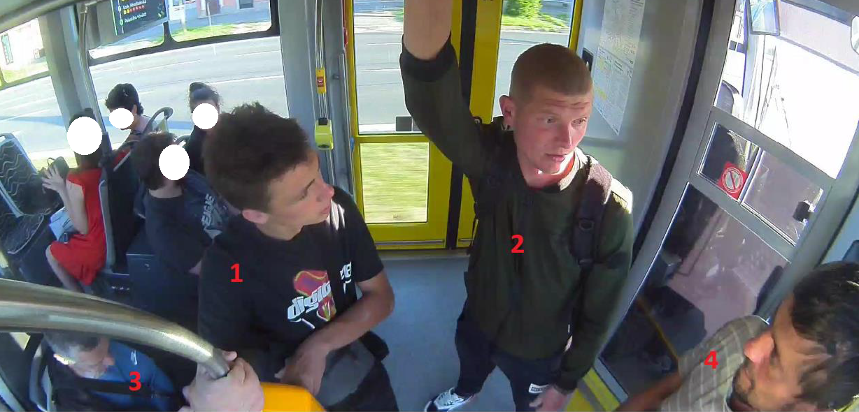 Plzeňští policisté pátrají po osobách zachycených na kamerových záznamech z tramvaje. Policie žádá všechny, kdo muže z fotografií poznají, aby se ozvali na linku 158 nebo na nejbližší služebnu.