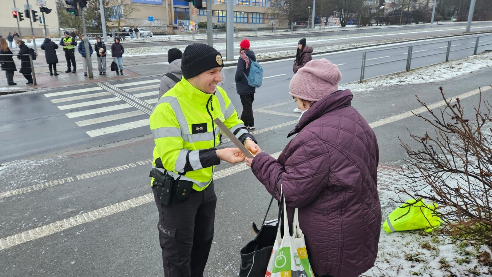 „V dopoledních hodinách jsme byli přítomni na předem vytipovaných místech v blízkosti základních škol a školských zařízení a u frekventovaných přechodů pro chodce v centru města a v jeho okolí. Vzhledem k současným nepříznivým povětrnostním podmínkám jsme se soustředili především na bezpečnost dětí,“ uvedla mluvčí policie Veronika Hokrová.