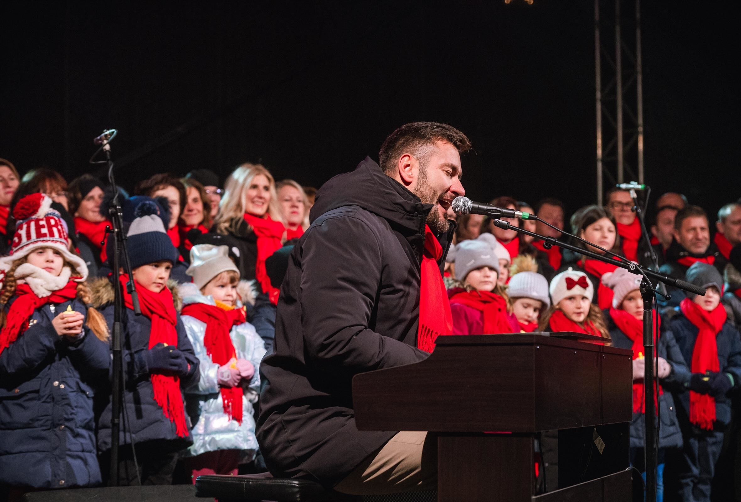 Obec si totiž jeho vystoupení vysoutěžila v celostátní soutěži na sociálních sítích, kde zvítězilo jejich originální video s největším počtem hlasů. Díky tomuto úspěchu zpěvák dorazil přesně na první adventní neděli, zazpíval u vánočního stromu a společně s obyvateli ho slavnostně rozsvítil.