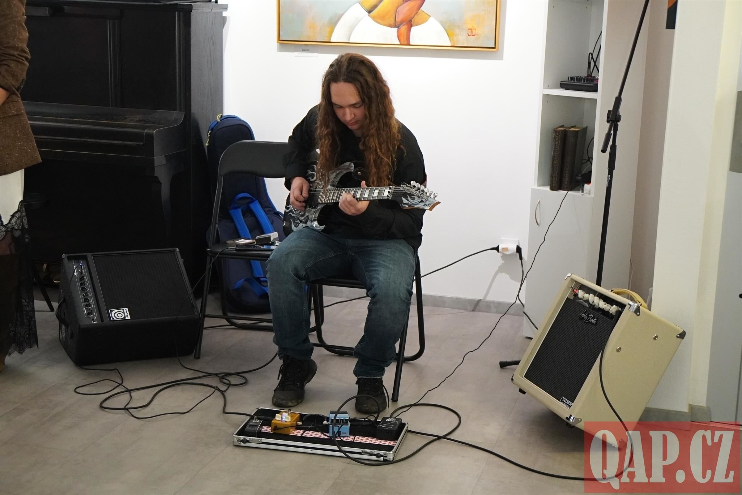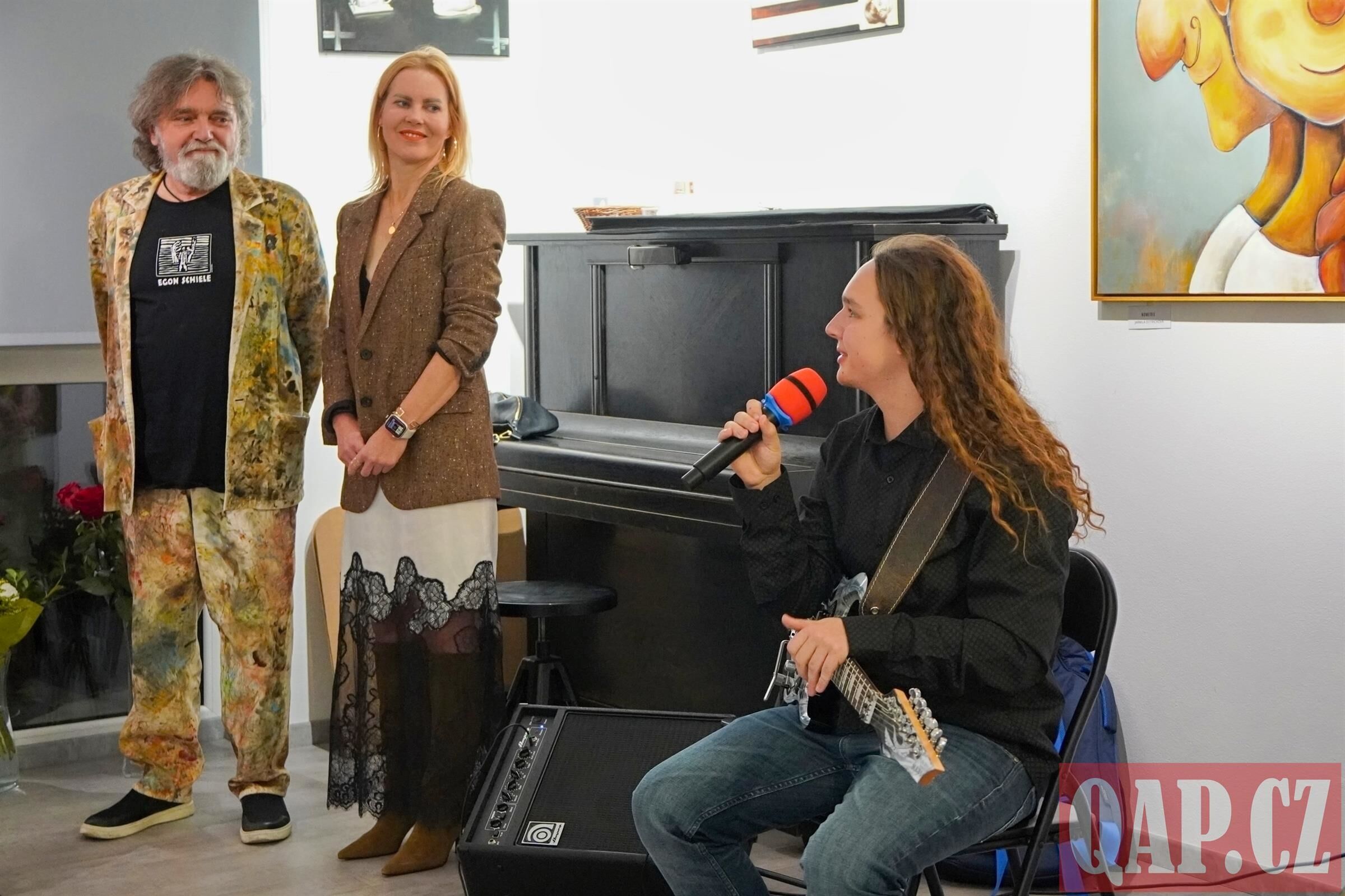 Hudební doprovod večera zajistil Jan Dvořák, vnuk Pavla Kremla, který na elektrickou kytaru podbarvil vernisáž jemnou a hravou náladou. Díky hudbě a otevřené atmosféře se hosté mohli volně procházet galerií se sklenkou lahodného vína v ruce, objevovat detaily panenek, ženských postav a zátiší, a diskutovat s autory o jejich inspiraci a přístupu k tvorbě.