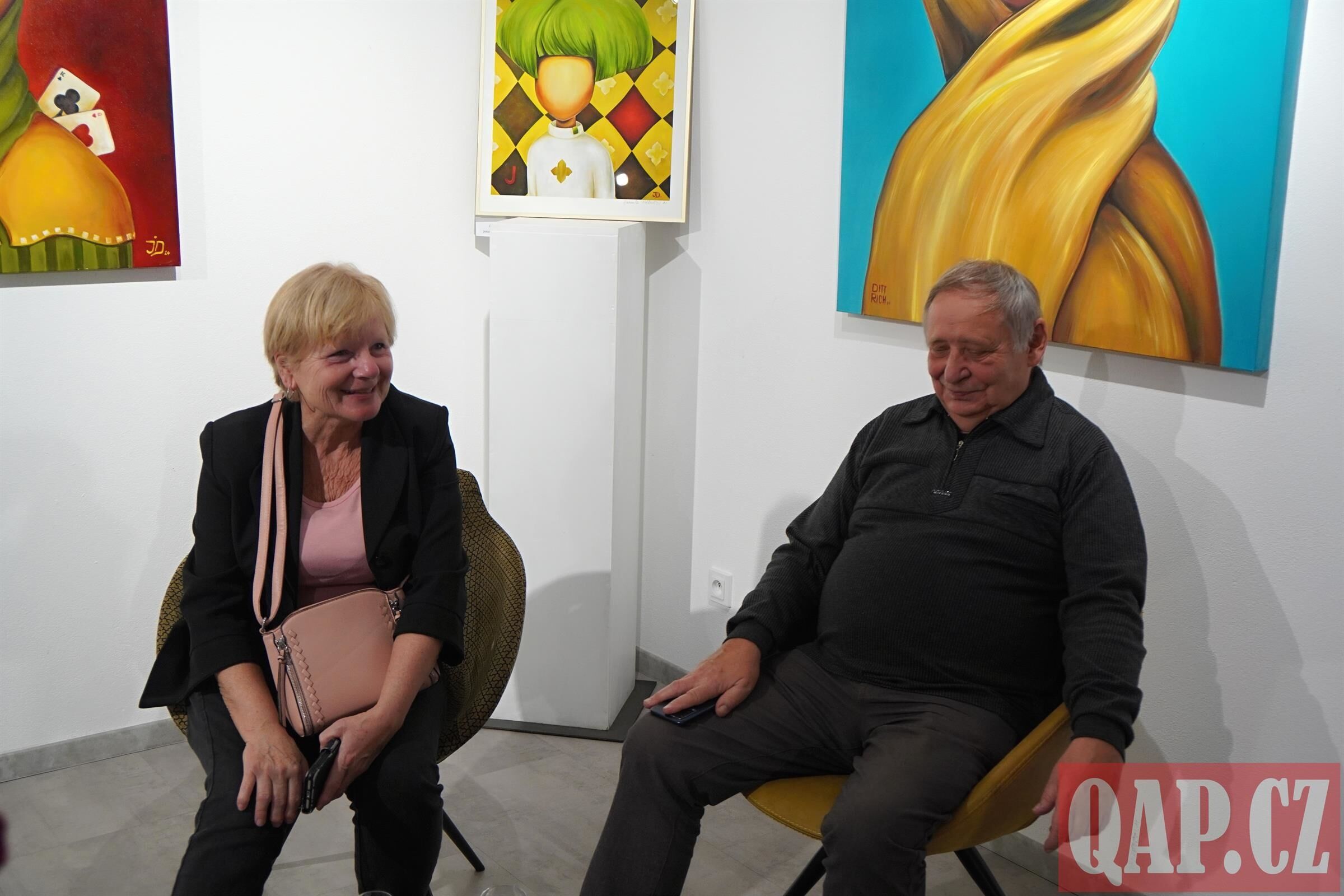 „Je mi ctí, že mohu vystavovat v tak krásném prostoru galerie a po boku Pavla,“ řekla redaktorce Jarmila Dittrichová. „Příběh, který píšu, je můj vlastní. Panenky jsem nazvala TyTaky od významu – ty to máš taky. Je to takové zrcadlo. Mé obrazy jsou minimalistické, vše jim vlastně chybí, ale vše se v nich dokáže odrazit. Mým cílem je, aby si každý personalizoval obraz sám pro sebe.“