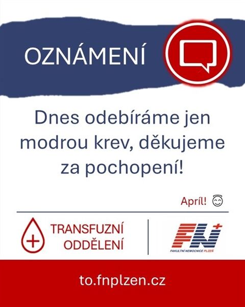 Mezi nejvtipnější příspěvky se letos zařadilo i Transfuzní oddělení FN Plzeň. To na svých stránkách zveřejnilo seriózně vyhlížející oznámení: „Dnes odebíráme jen modrou krev, děkujeme za pochopení!“ Zdá se, že pokud nejste zrovna ze šlechtického rodu, musíte si na darování krve počkat do zítřka.