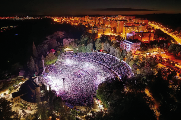 Nově zrekonstruovaný amfiteátr s dokončeným pódiem v roce 2020 (zdroj: Amfiteátr Lochotín, Plzeň / JARO EVENT s.r.o., pořadatel projektu)