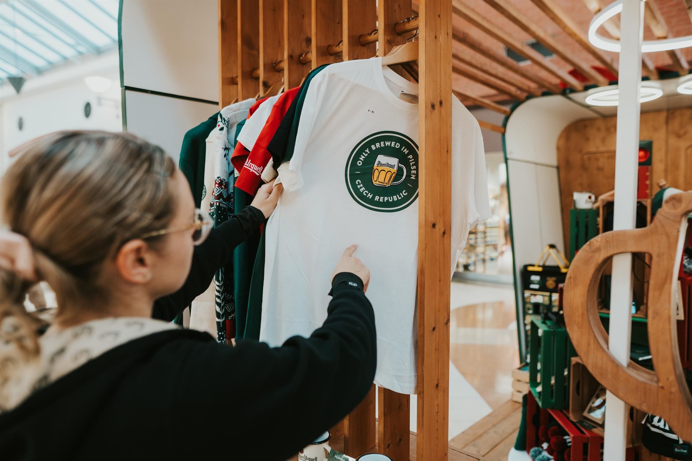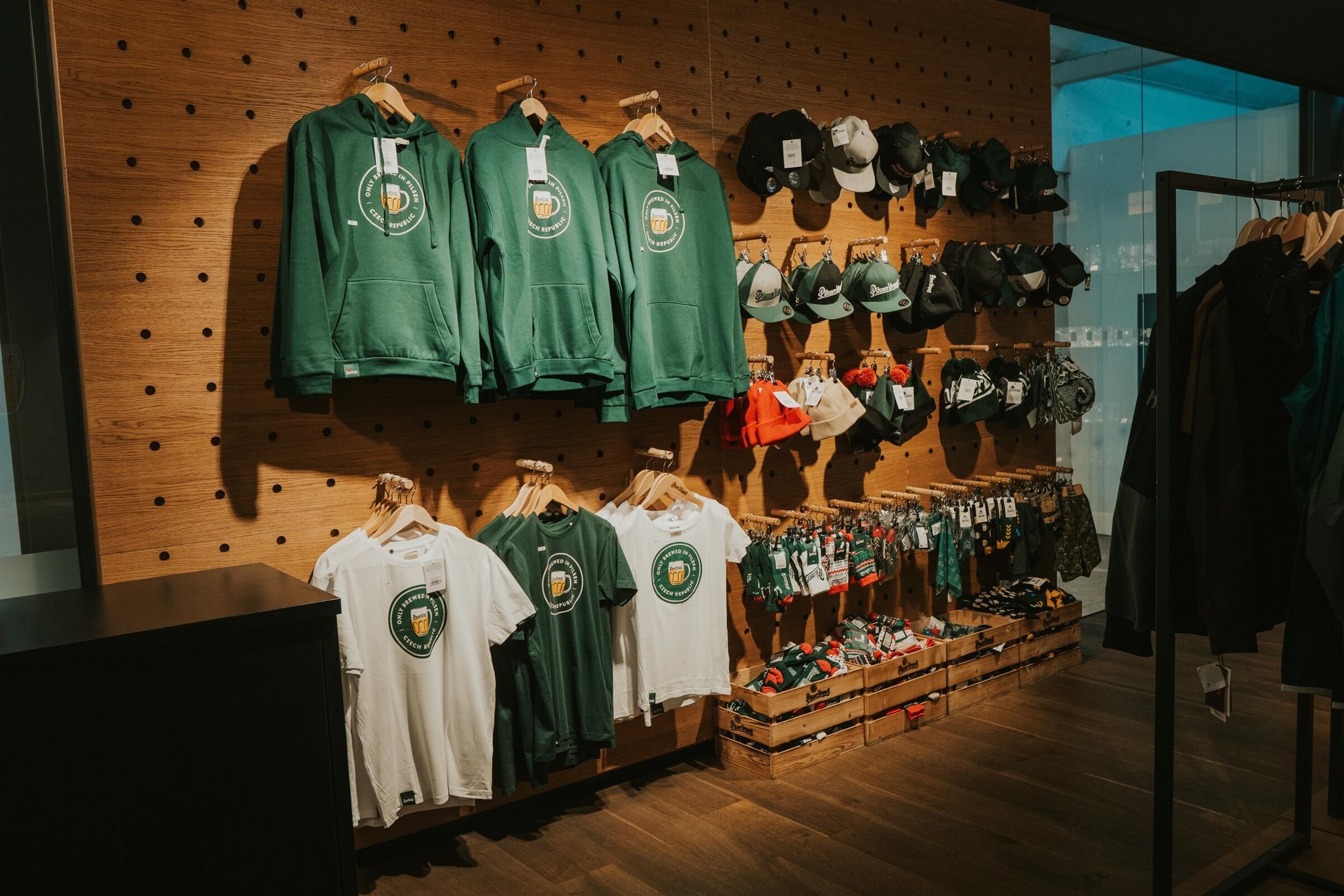 Vybírat můžete z kvalitního pivního skla, tradičních suvenýrů i praktických doplňků pro každodenní použití. Nechybí ani oblečení v barvách pivovaru – od triček a mikin až po zimní čepice, šály či ponožky.