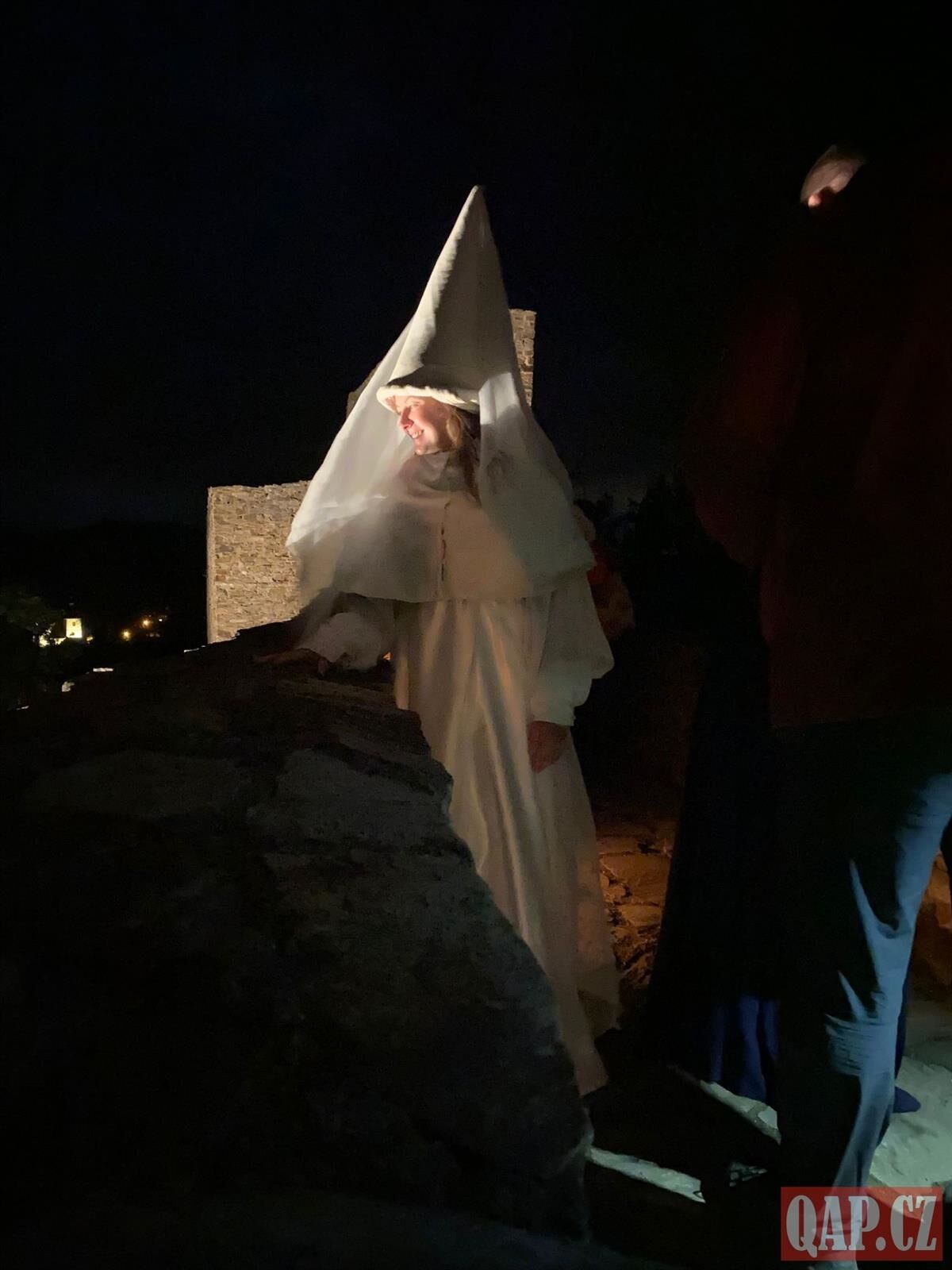 Tajemnou atmosféru doplnila i přítomnost bílé paní, která tiše pozorovala příchozí na hradbě. Celý večer nabídl jedinečný a nezapomenutelný zážitek.