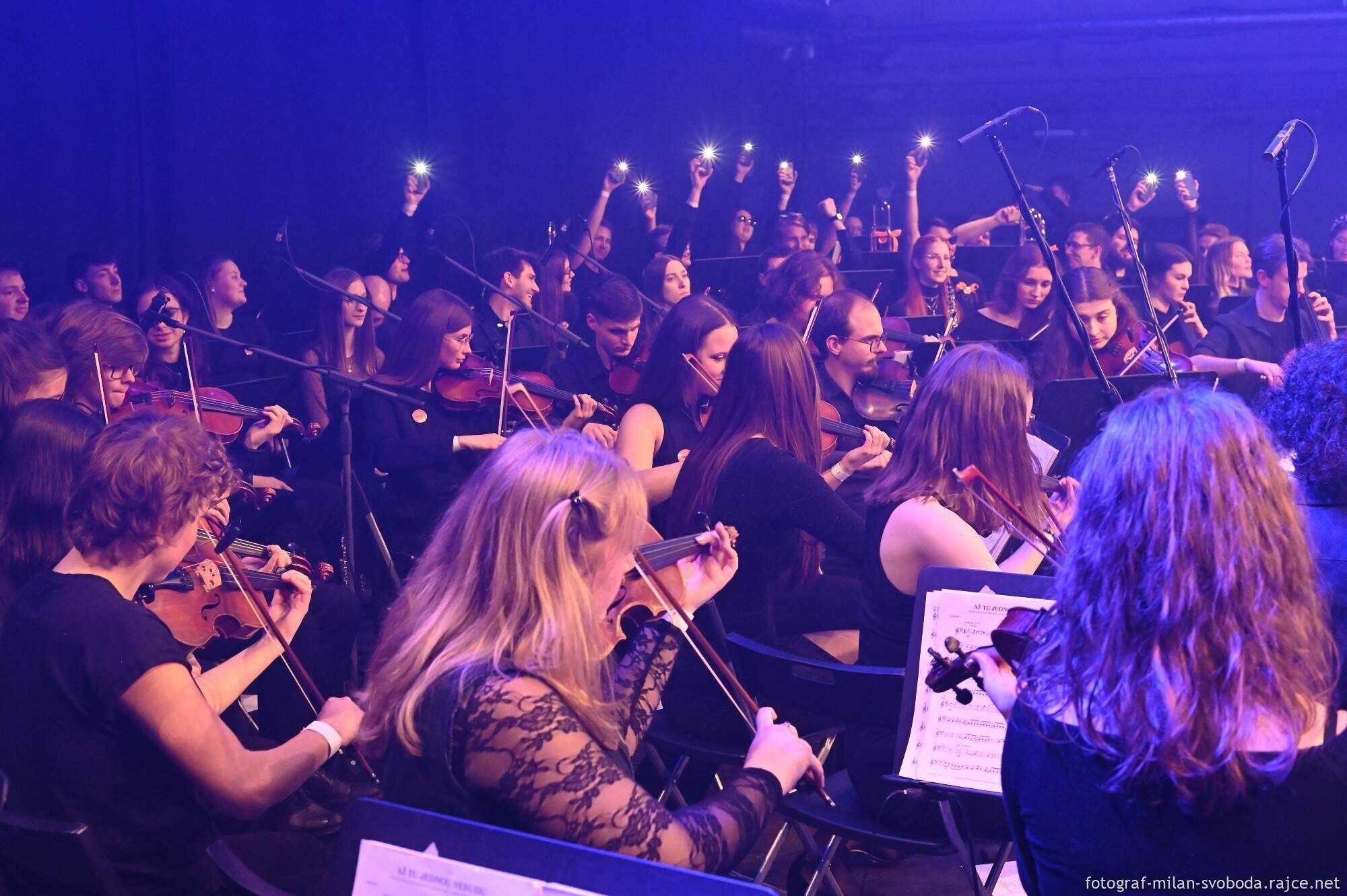 Byl to večer plný kontrastů, který vyústil v nezapomenutelný hudební zážitek. Na jedné stage se sešlo přes sedmdesát mladých plzeňských muzikantů, aby v symfonickém aranžmá představili repertoár kapely Skotační kulomet.