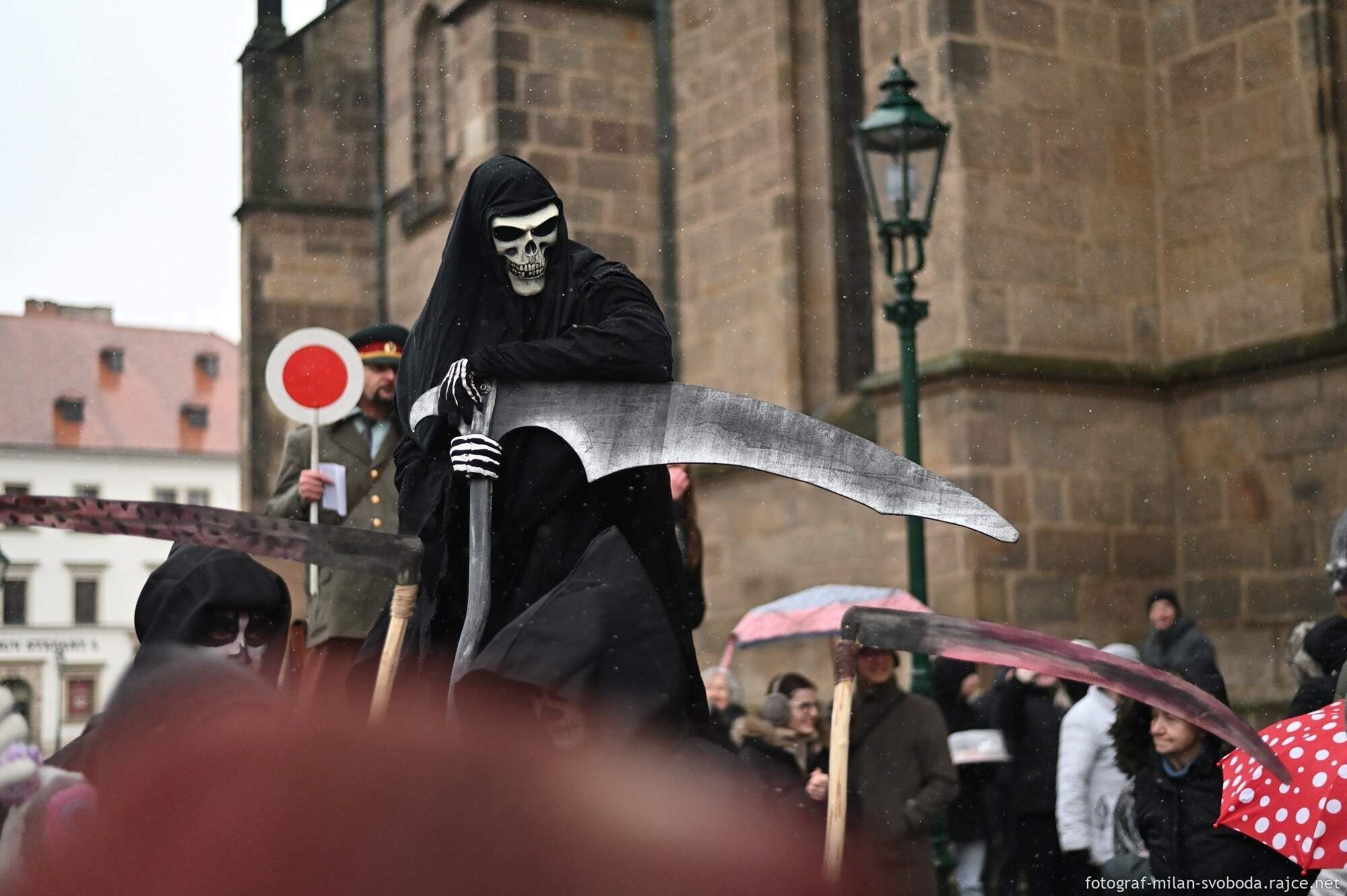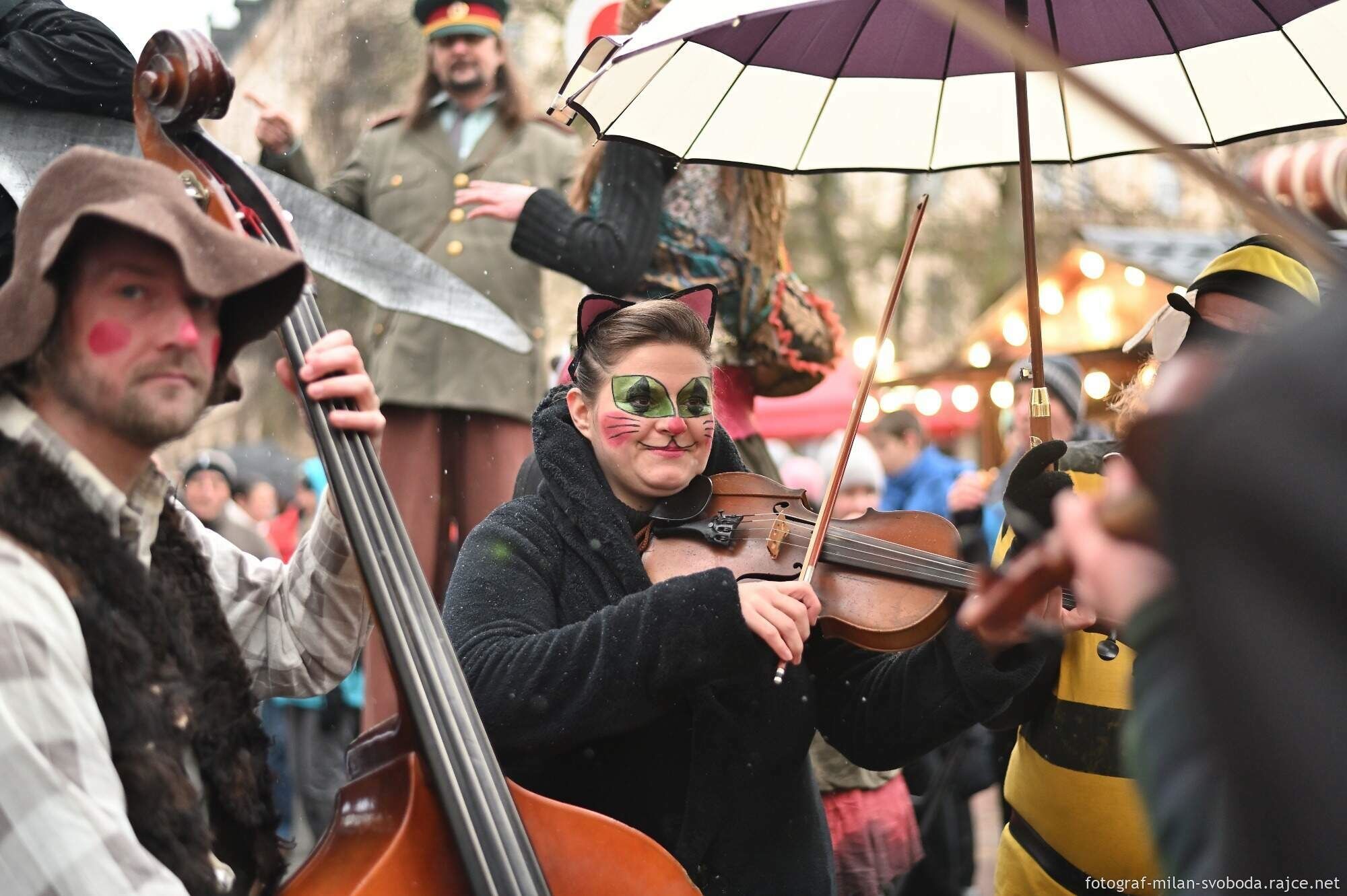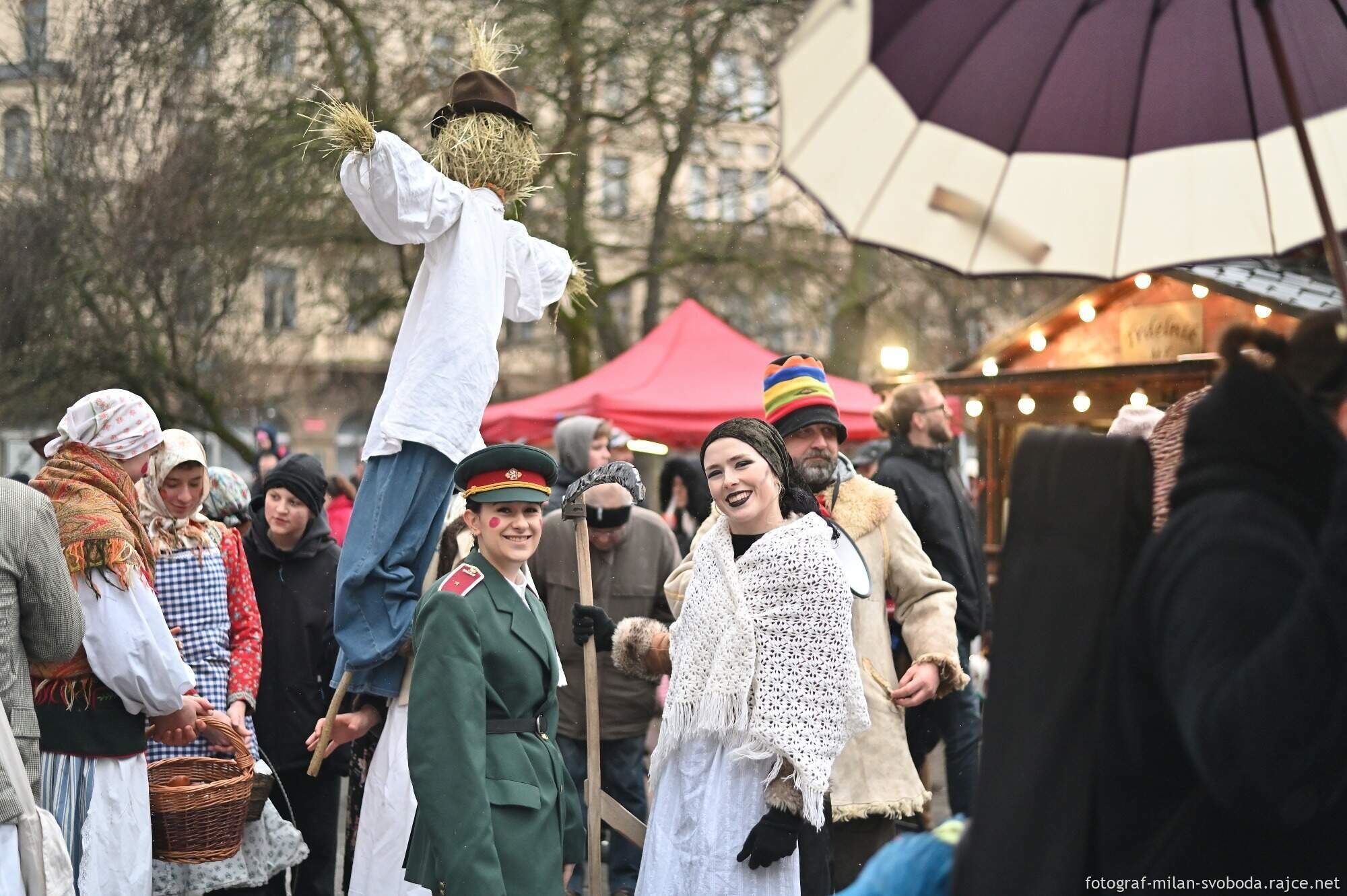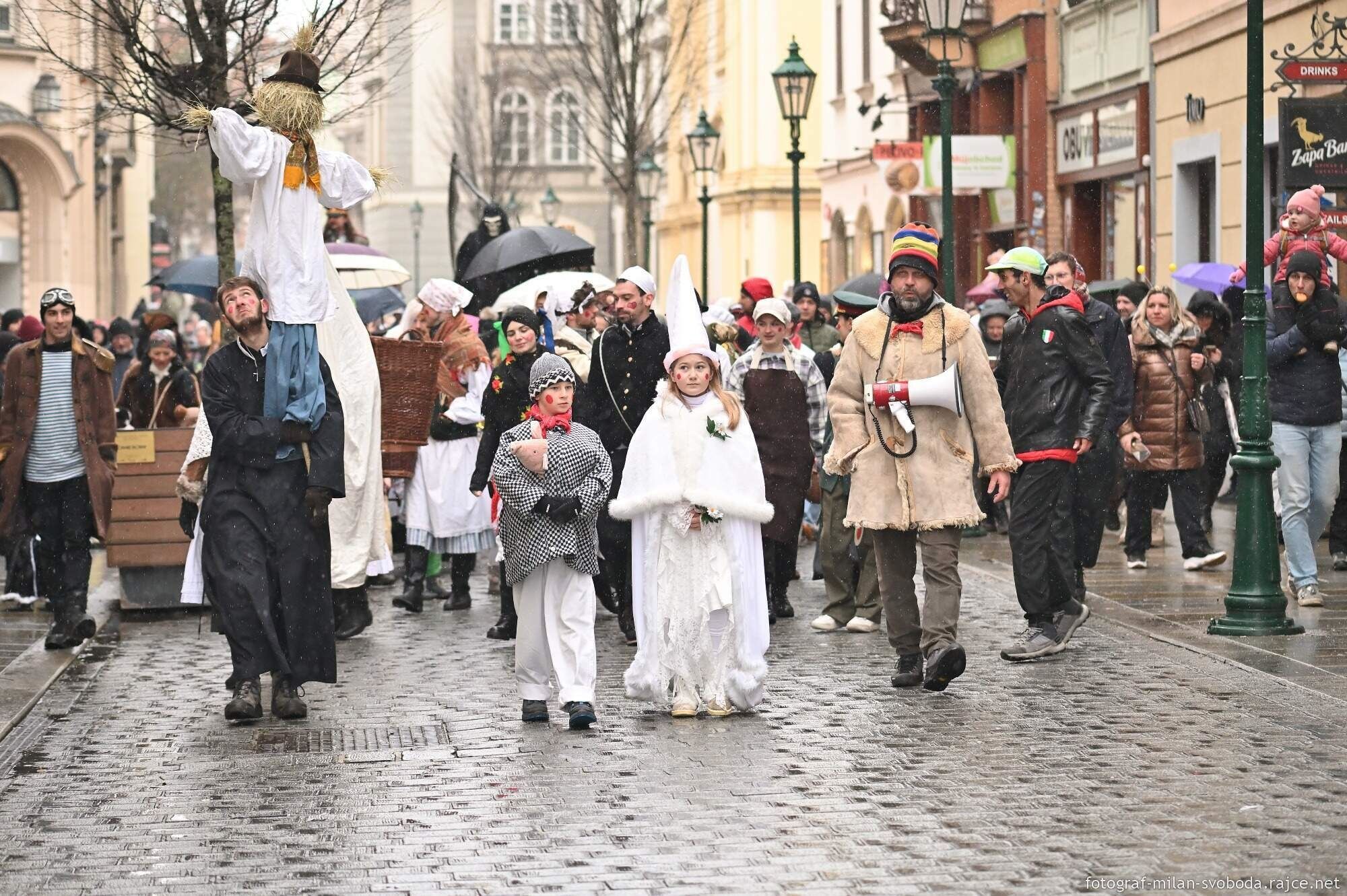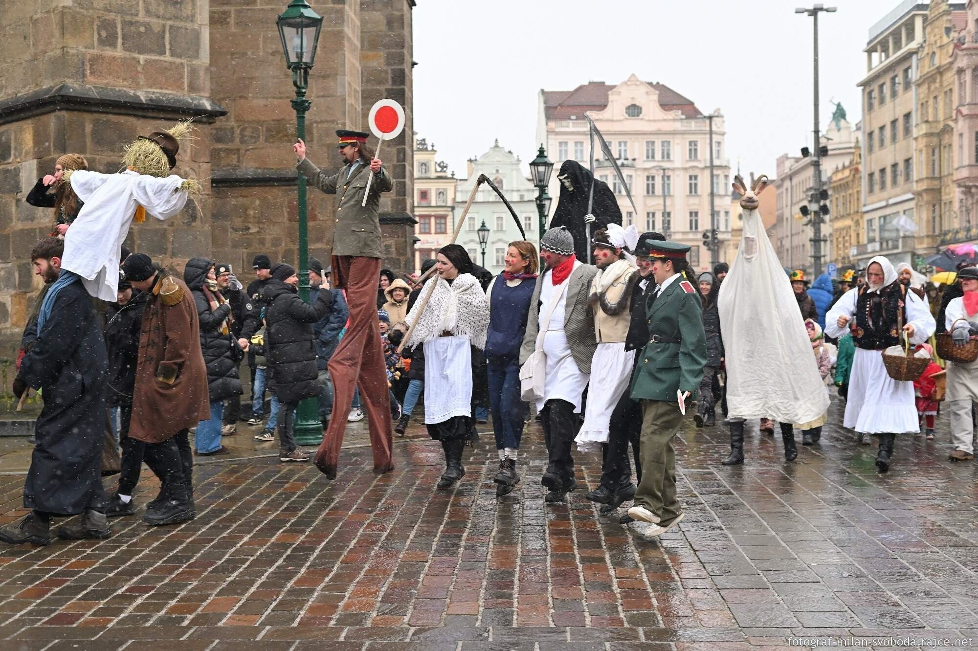 Průvod doprovázely lidové soubory - Mladina, Mladinka i dechovka plzeňské Konzervatoře – 12° Plzeň. Mezi maskami byly k vidění i maškary na chůdách.