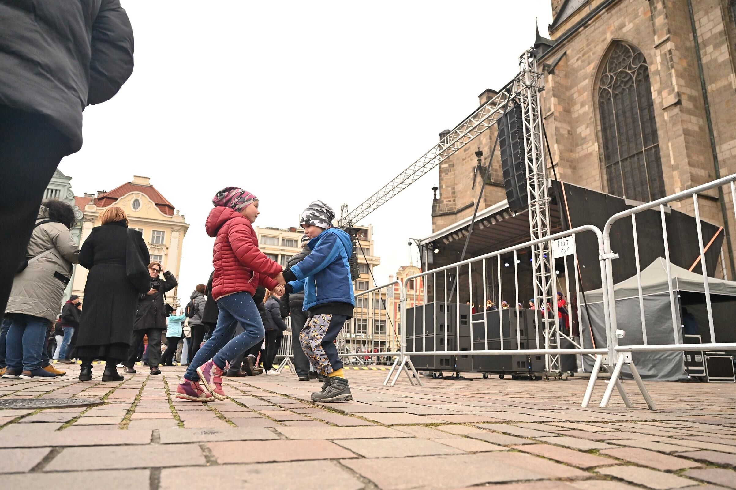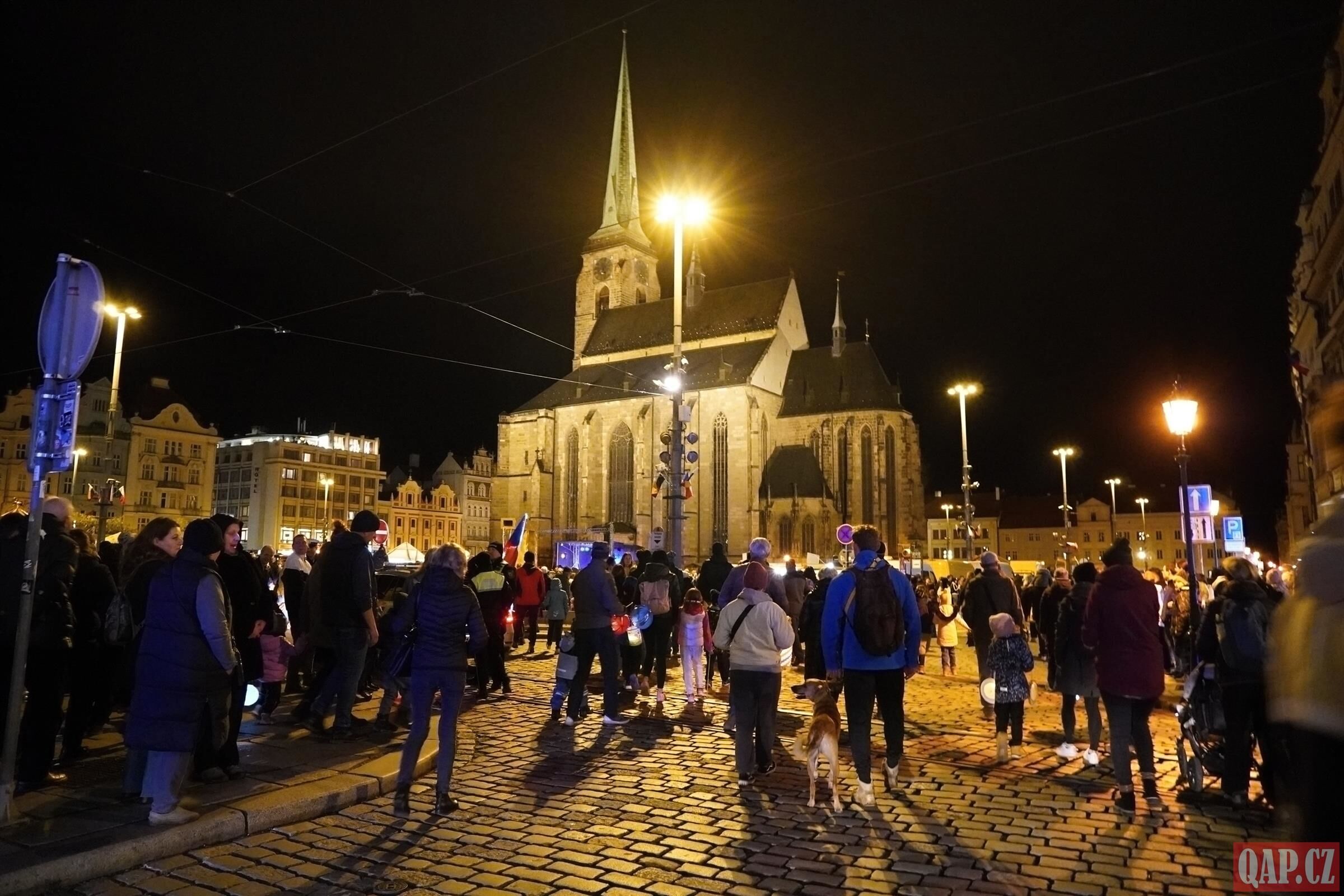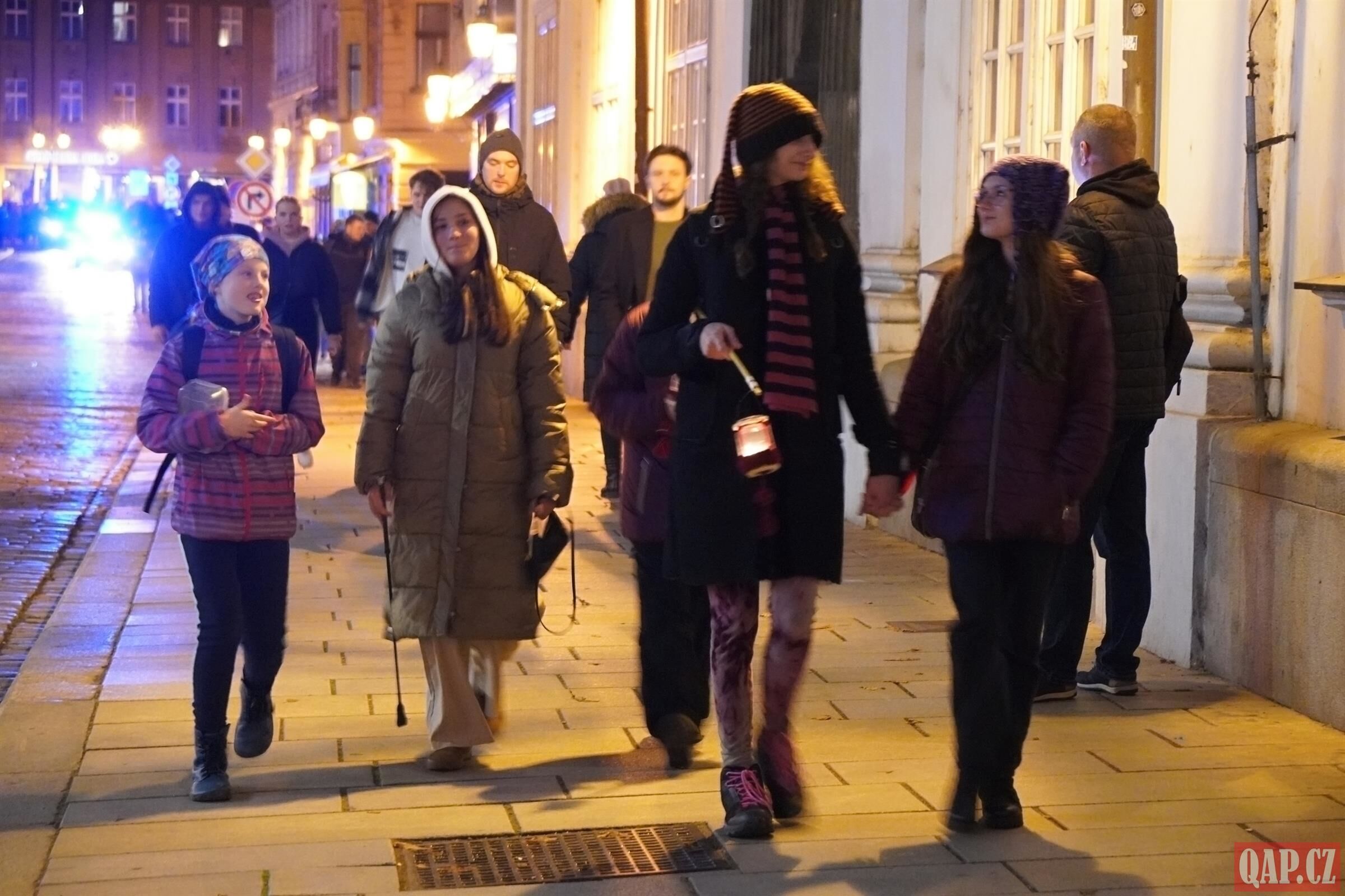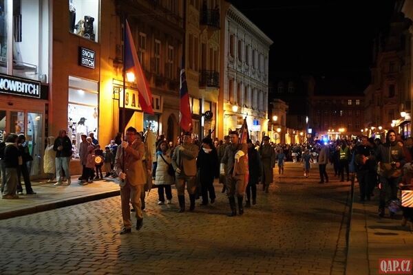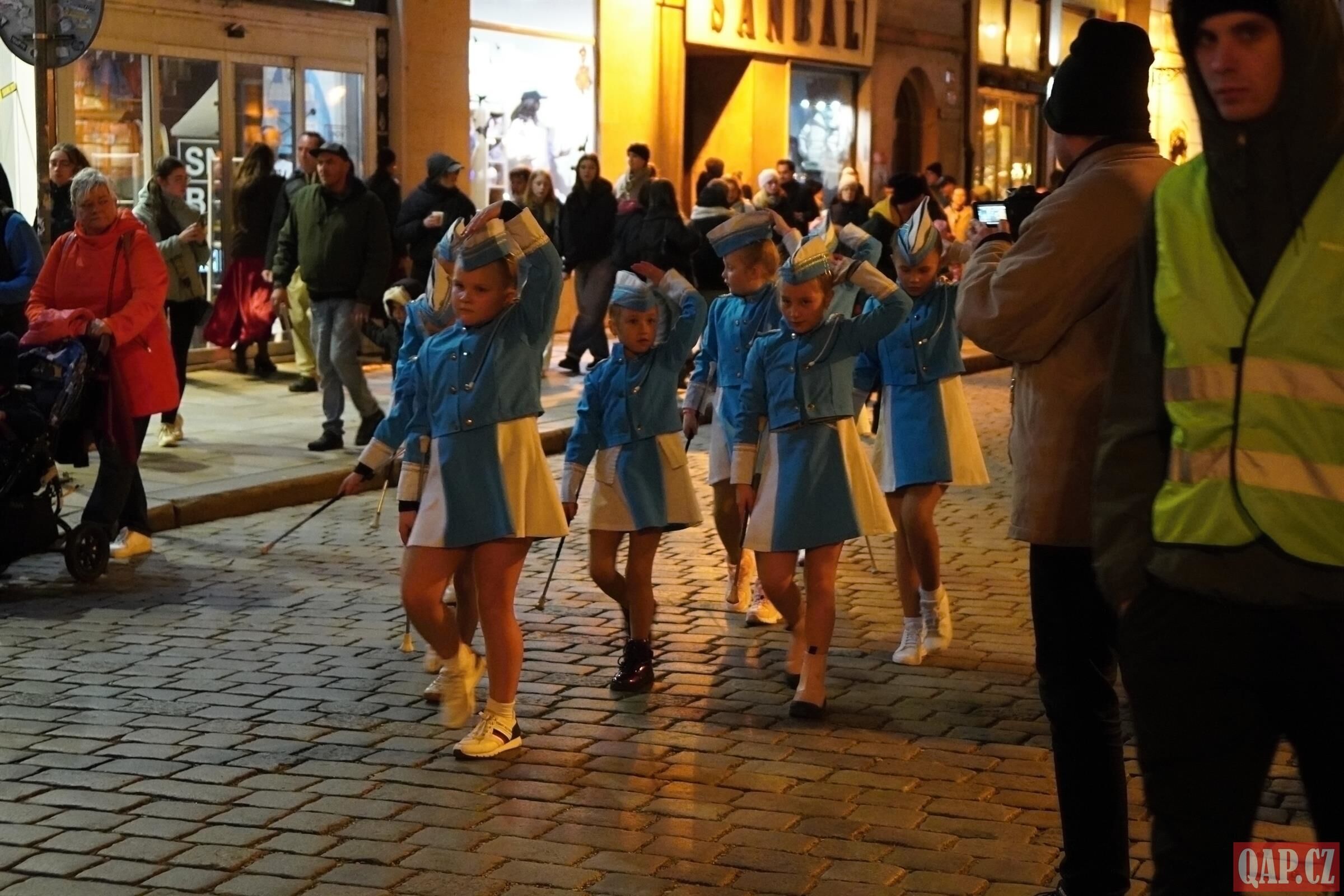 Závěr svátečního dne patřil tradičnímu lampionovému průvodu, který se vydal z náměstí T. G. Masaryka na náměstí Republiky. Původně plánovaný tichý ohňostroj muselo město kvůli silnému větru zrušit – bezpečnost tak dostala přednost. „Je to škoda, že to zrušili, nakonec není ani tak špatné počasí, ale chápeme to a těšíme se na příští rok,“ uvedla Jana z Litic, která šla v průvodu se svou rodinou.