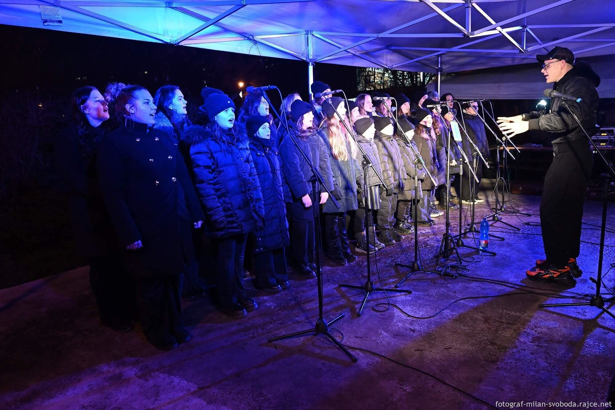 Po rozsvícení následoval tichý ohňostroj, který se rozehrál nad sídlištěm za doprovodu hudby. Celý večer zakončilo vystoupení pěveckého sboru Jéčko.