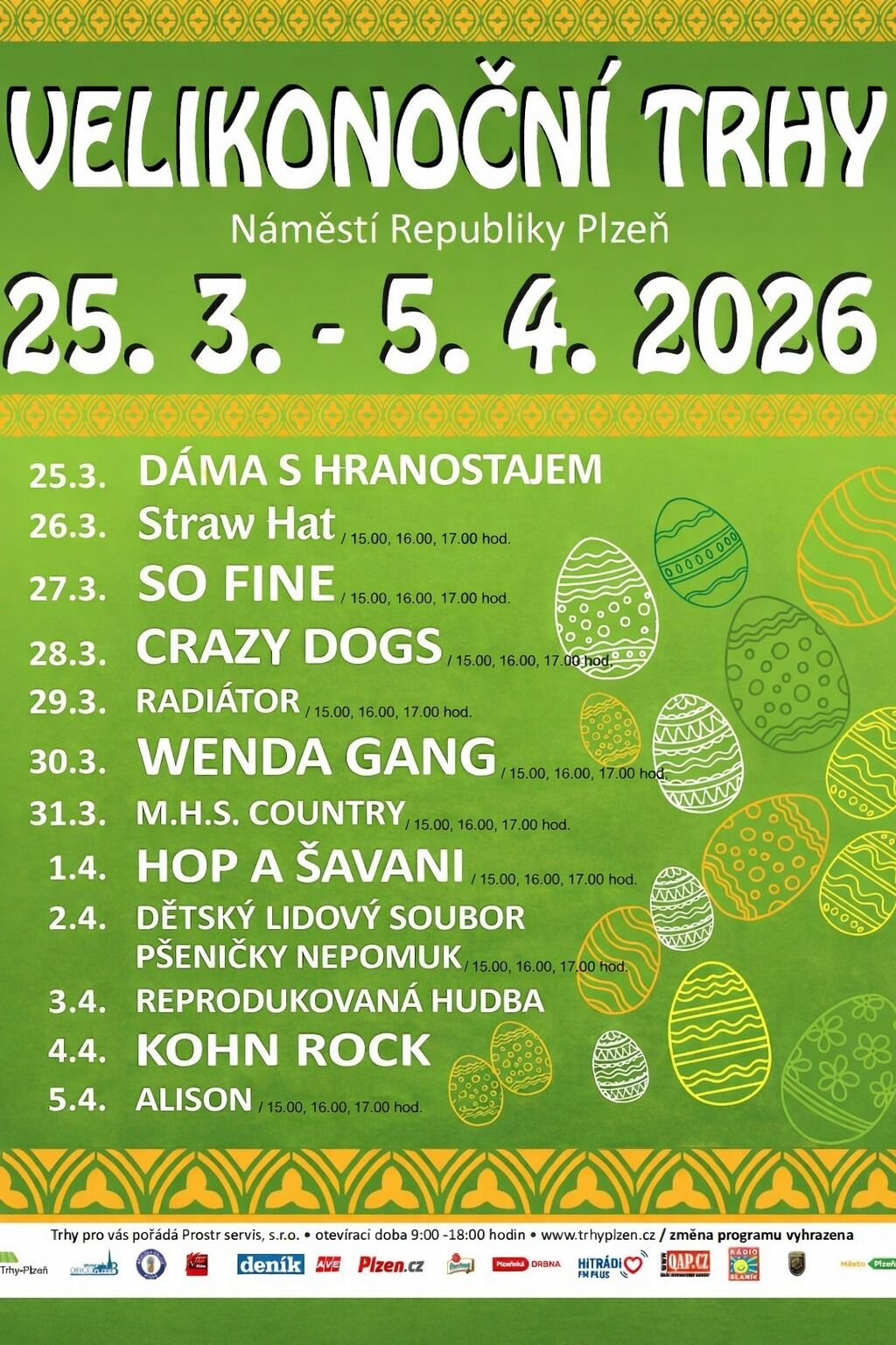Chybět nebude každodenní kulturní program s živou hudbou. Kapely různých žánrů zahrají každý den v časech 15:00, 16:00, 17:00 hodin.