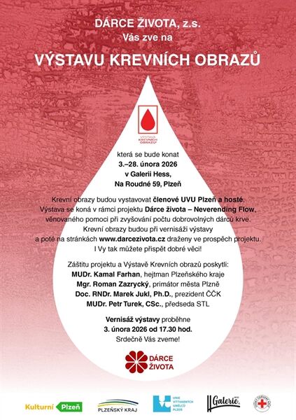 Galerie Na Roudné v Plzni představí výjimečný projekt, který dává umění hlubší smysl. Výstava představí díla inspirovaná životem a dárcovstvím krve. V úterý 3. února 2026 od 17:30 jste zváni na slavnostní vernisáž.