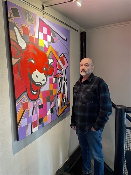 Na aktuální výstavě však představí jiný typ práce, než na jaký jsou příznivci u jeho tvorby zvyklí. Výběr děl zdůrazňuje jeho hravost, jazykové přesmyčky a práci s metaforou.