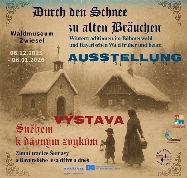 Přijďte objevit zimní tradice Šumavy a Bavorského lesa, tak jak je znali naši předkové – i jak žijí dodnes. Výstava v muzeu lesa ve Zwieselu se jmenuje „Sněhem k dávným zvykům“ a začíná 6. prosince.