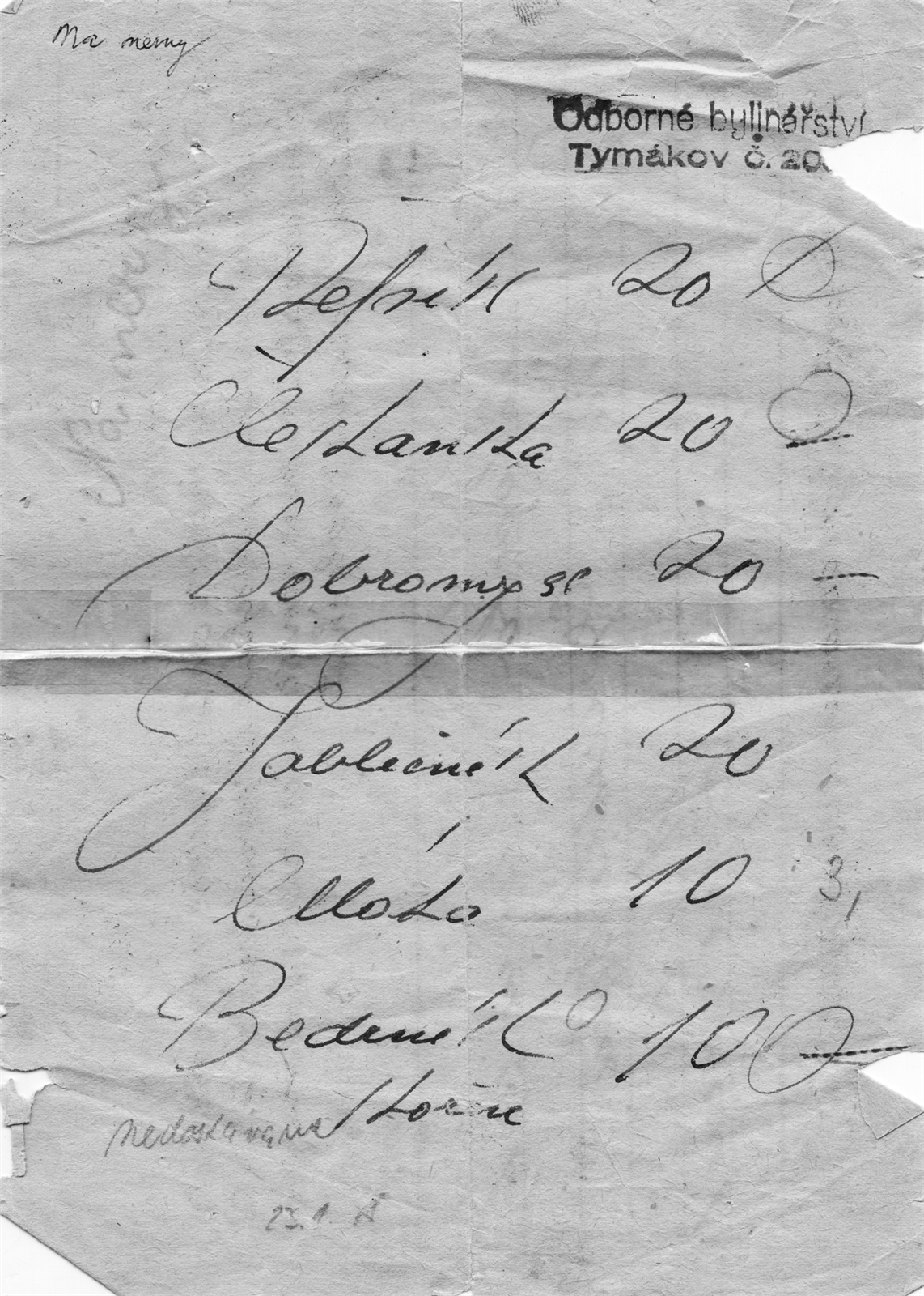 Recept psaný Boženou Kamenickou na přípravu nervového čaje