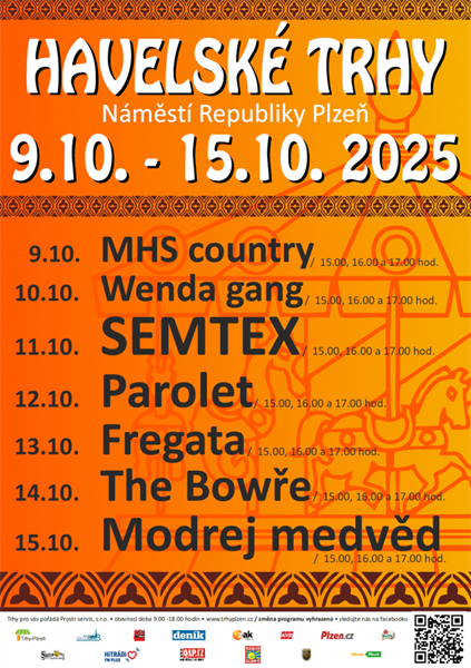 Havelské trhy se budou konat od čtvrtka 9. října až do středy 15. října. Na náměstí Republiky budou stánky plné vůní a chutí podzimu. Chybět nebude staročeský trdelník, voňavý svařák, medovina, lahodné sýry ani klobásky. K tomu si návštěvníci prohlédnou ukázky lidových řemesel v podání řezbářů, kovářů či výrobců svíček a keramiky.