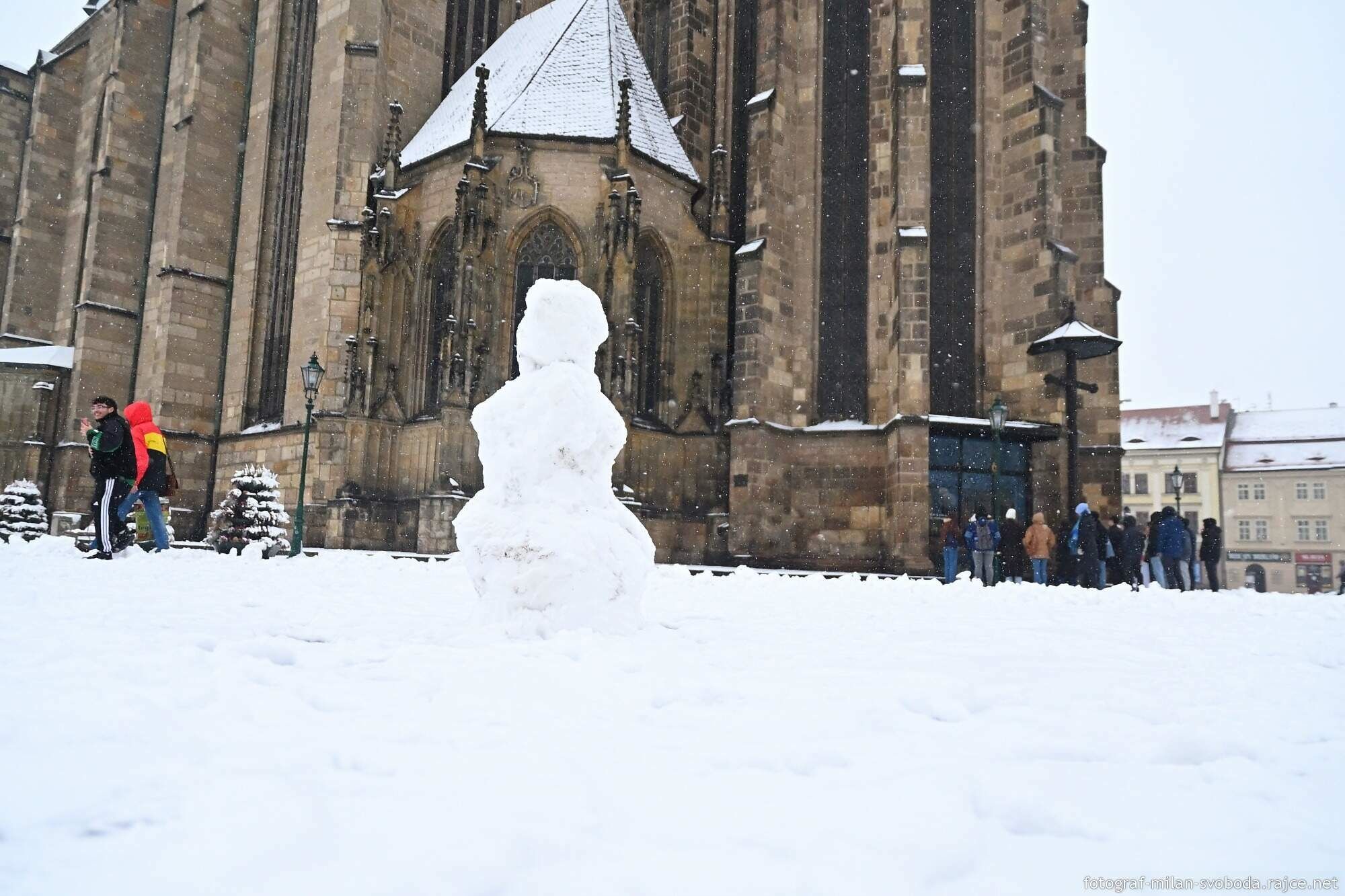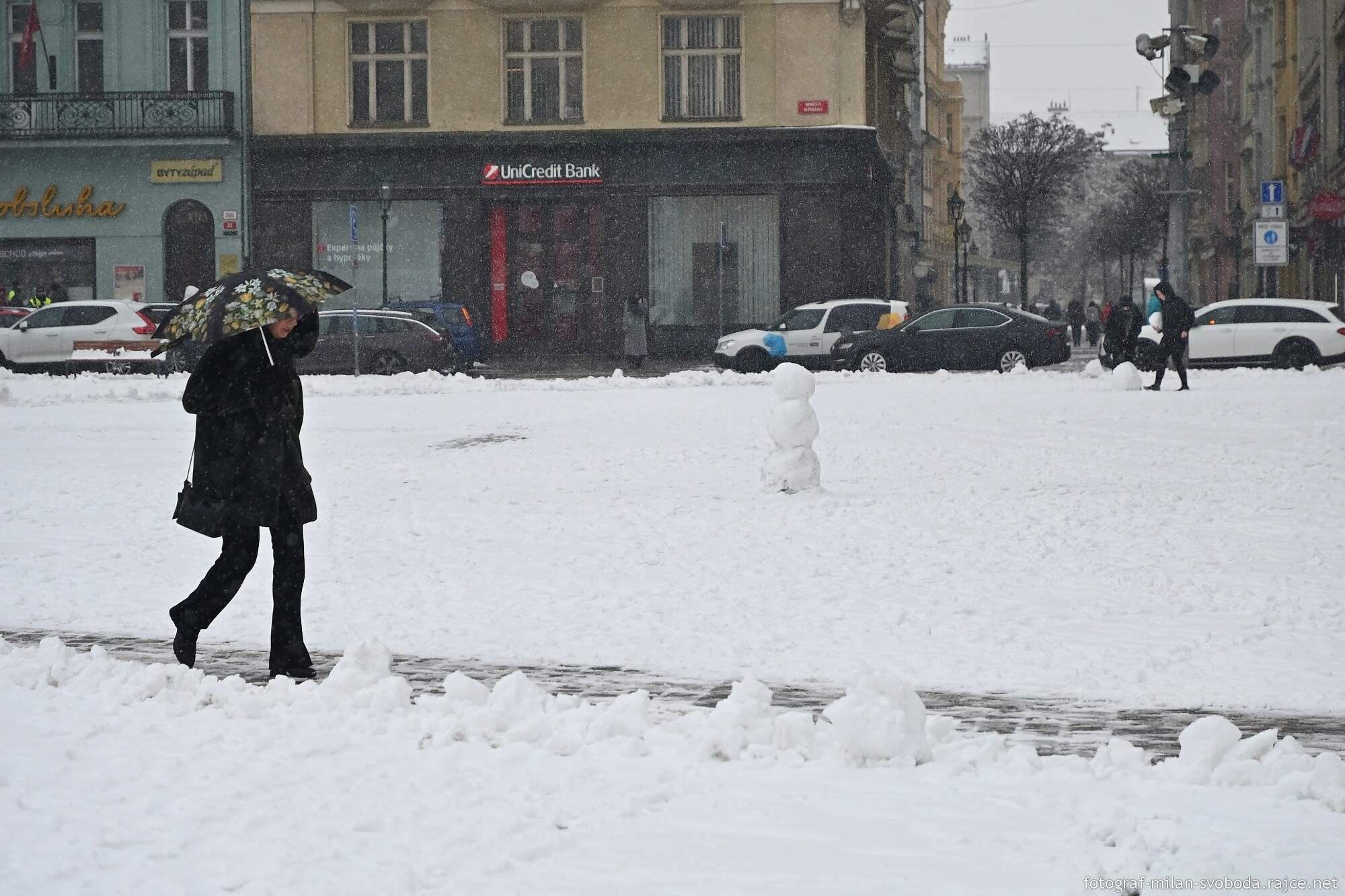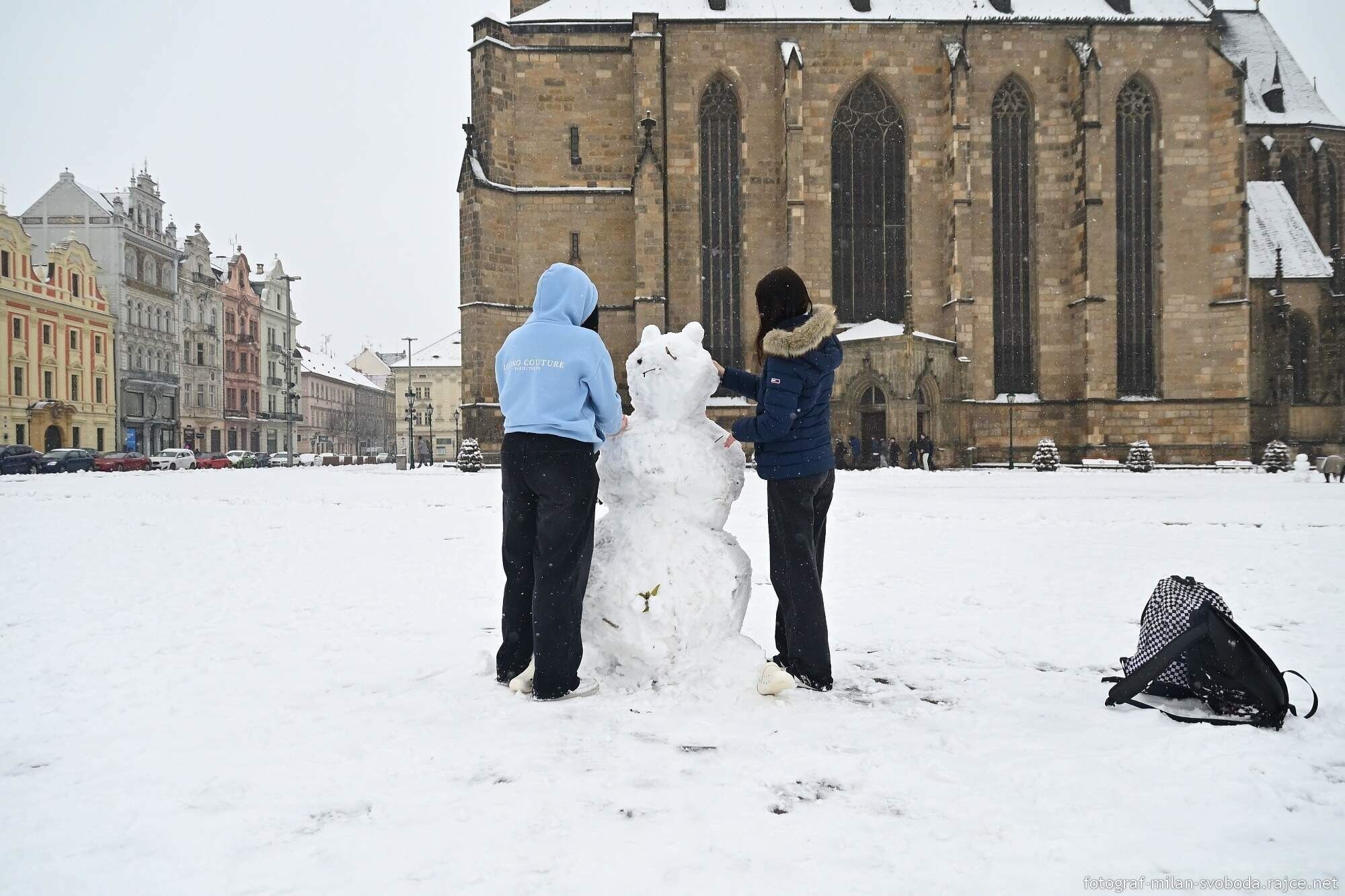 Jeho objektivu samozřejmě neunikla ani největší atrakce, která se objevila přímo v srdci města. Na náměstí Republiky totiž vyrostlo hned několik parádních sněhuláků.