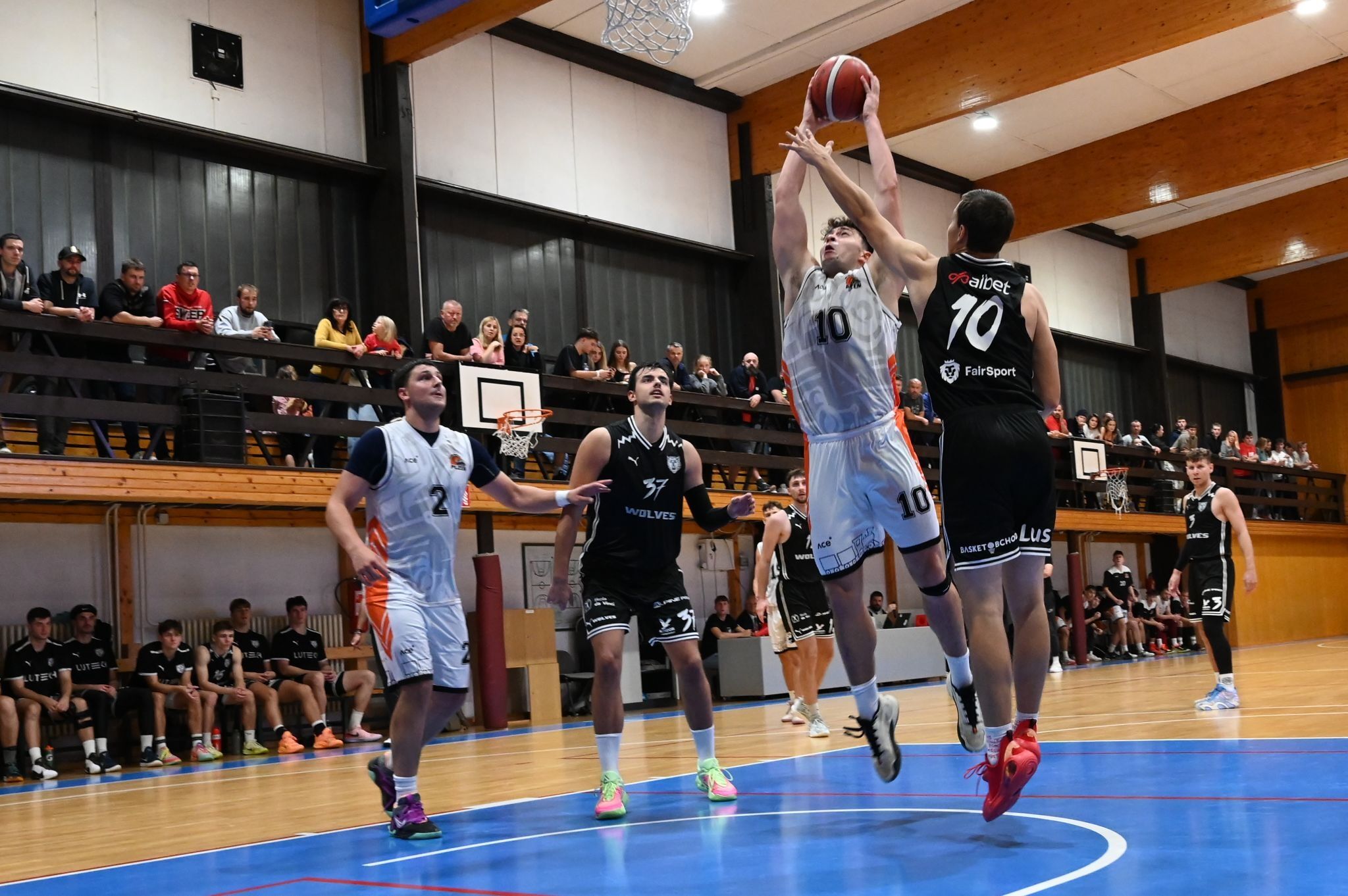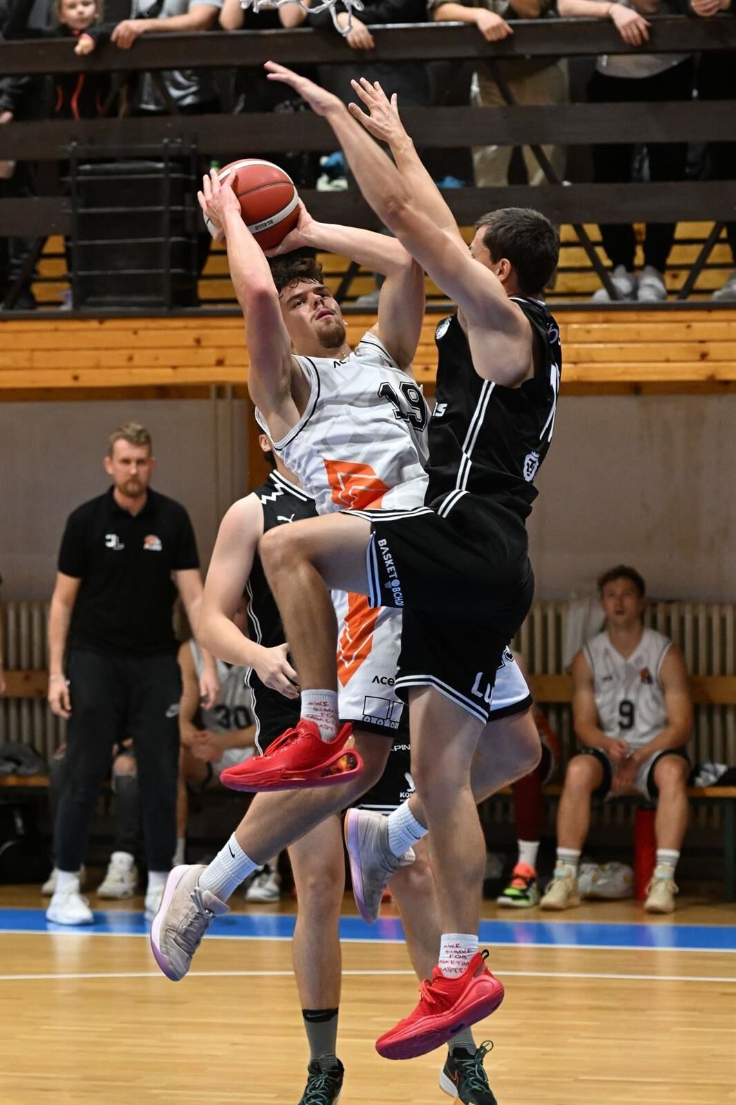Domácí celek nastupoval do utkání v roli favorita a úvodní minuty to potvrdily. Lokomotiva vyhrála první čtvrtinu 30:26, poté však hosté z Radotína zpřesnili střelbu a do poločasu otočili skóre na svou stranu (50:57).