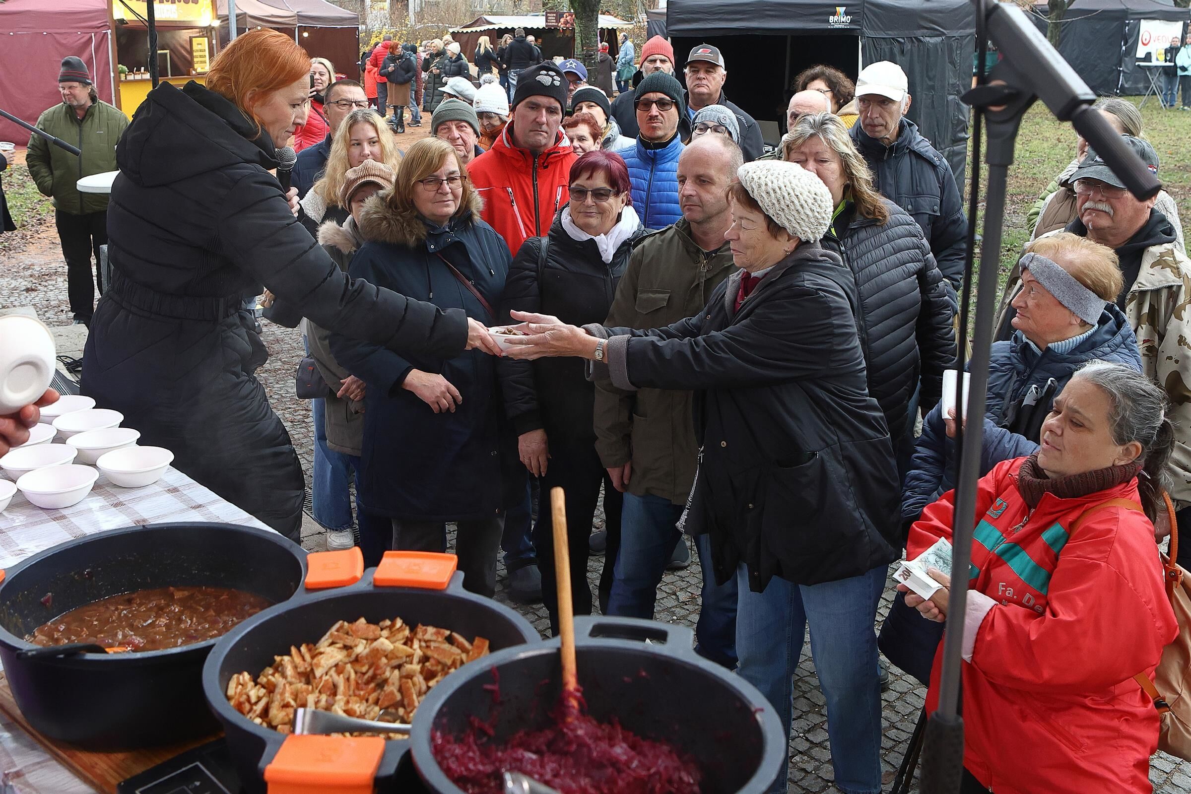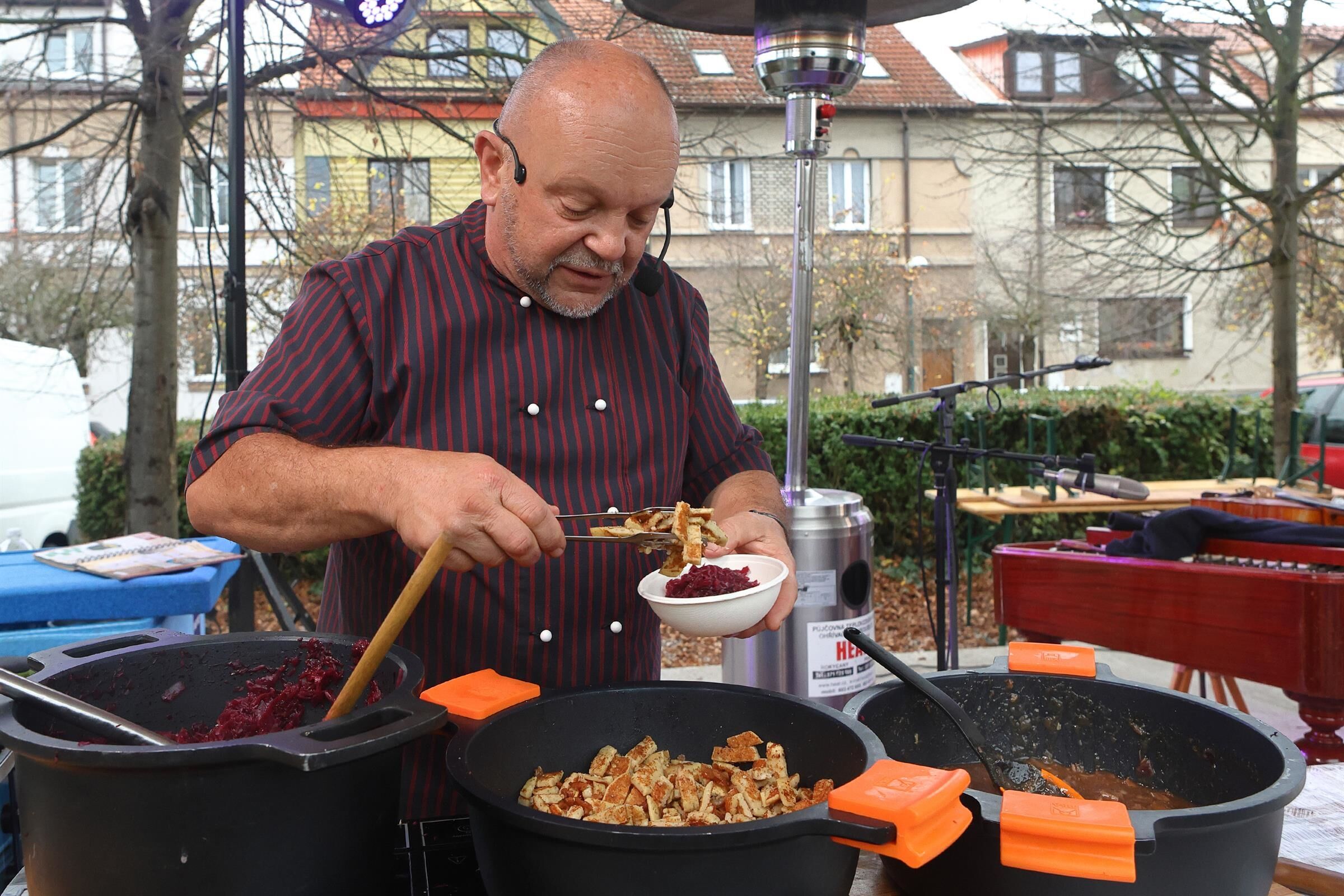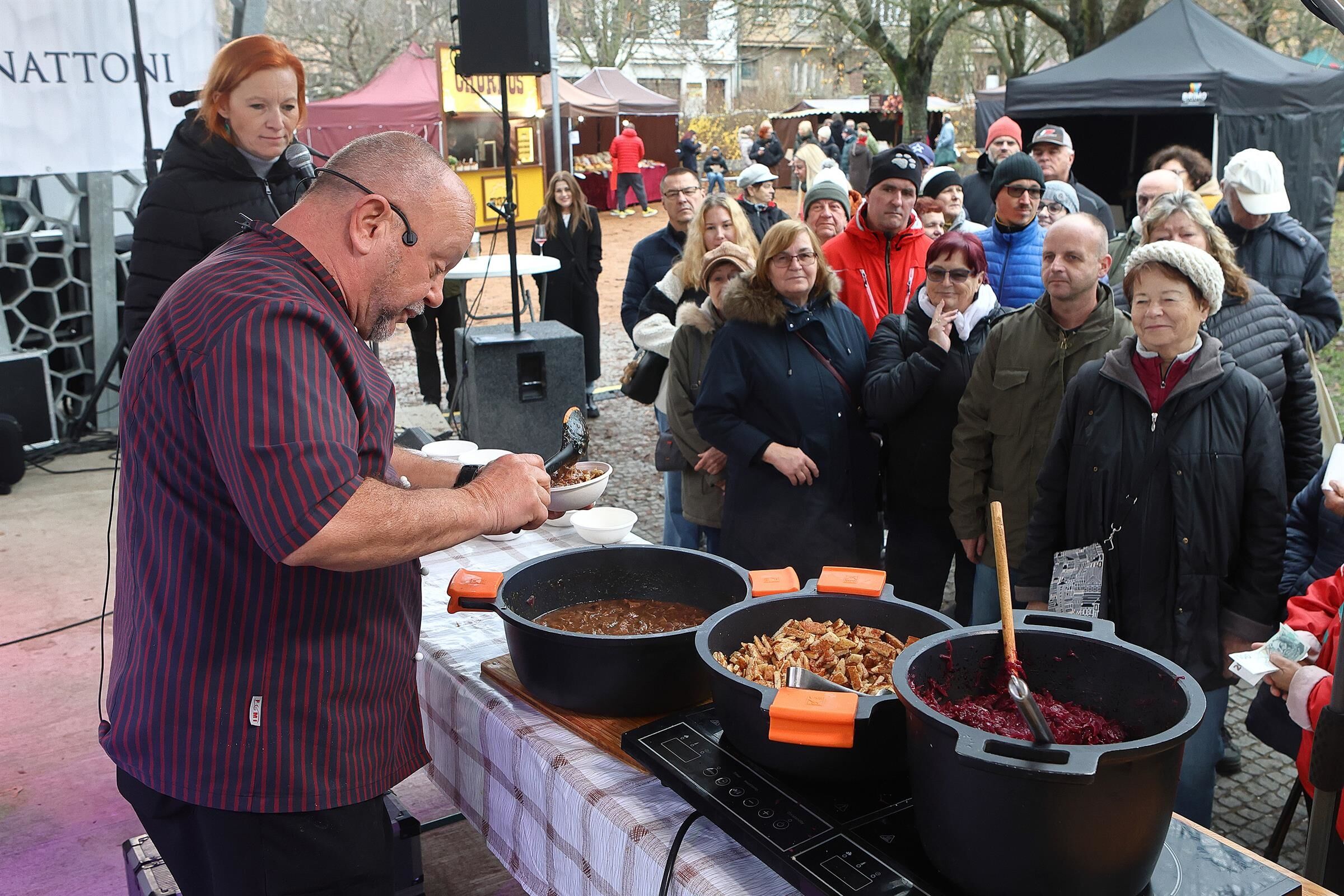 Největší zájem byl o klasiku, tedy o svatomartinskou husu se zelím a knedlíky, které se prodalo přes 300 porcí. Na odbyt šly i bramborové lokše s trhaným husím masem nebo husí burgery. Návštěvníky zaujal také šéfkuchař Petr Stupka, který na pódiu připravil netradiční recept – husí maso s červeným zelím a cizrnovými placičkami smaženými na husím sádle.