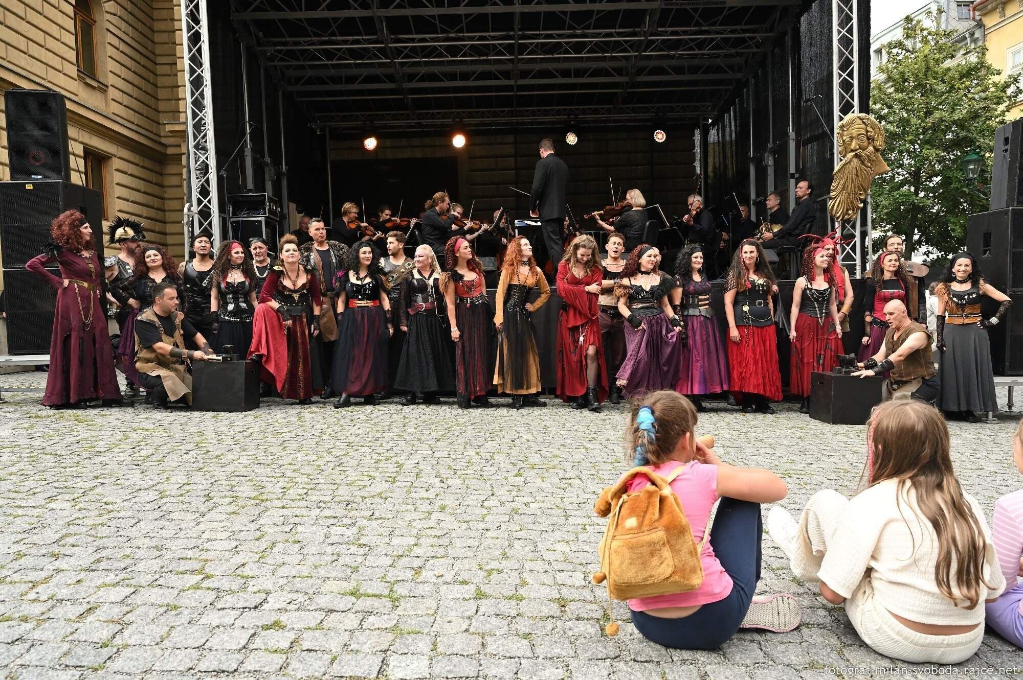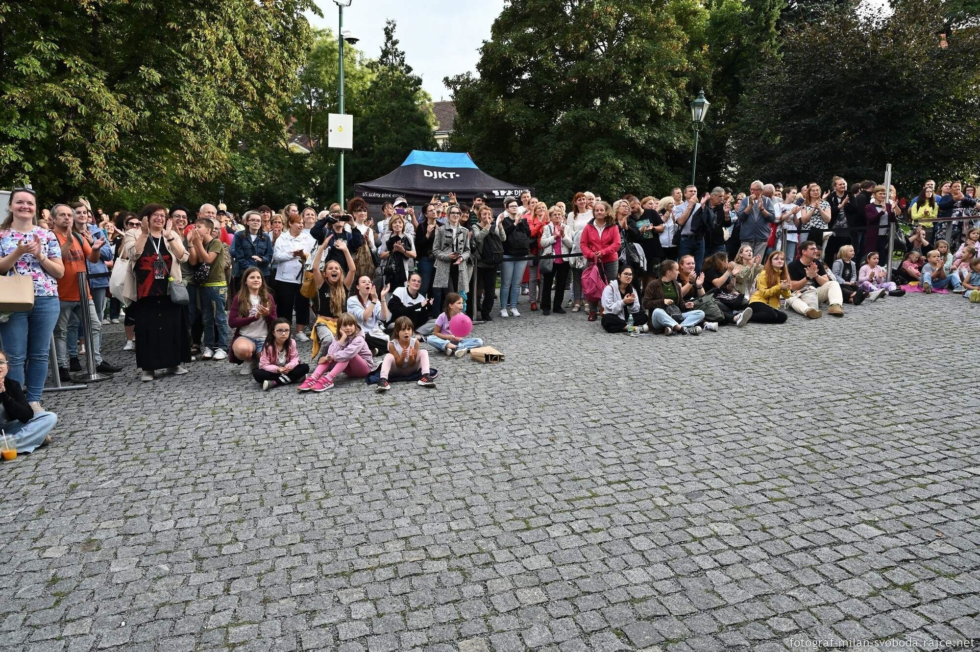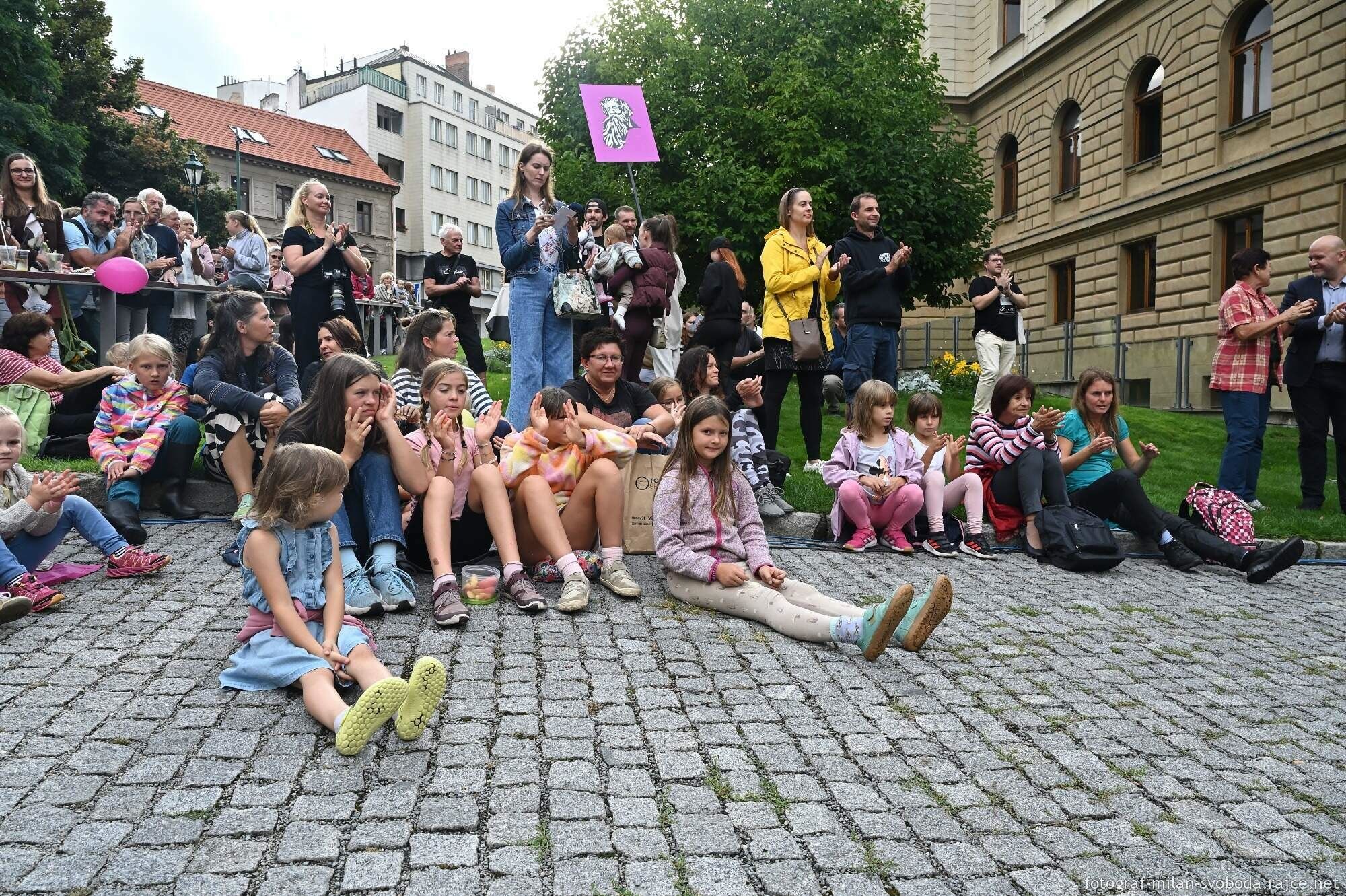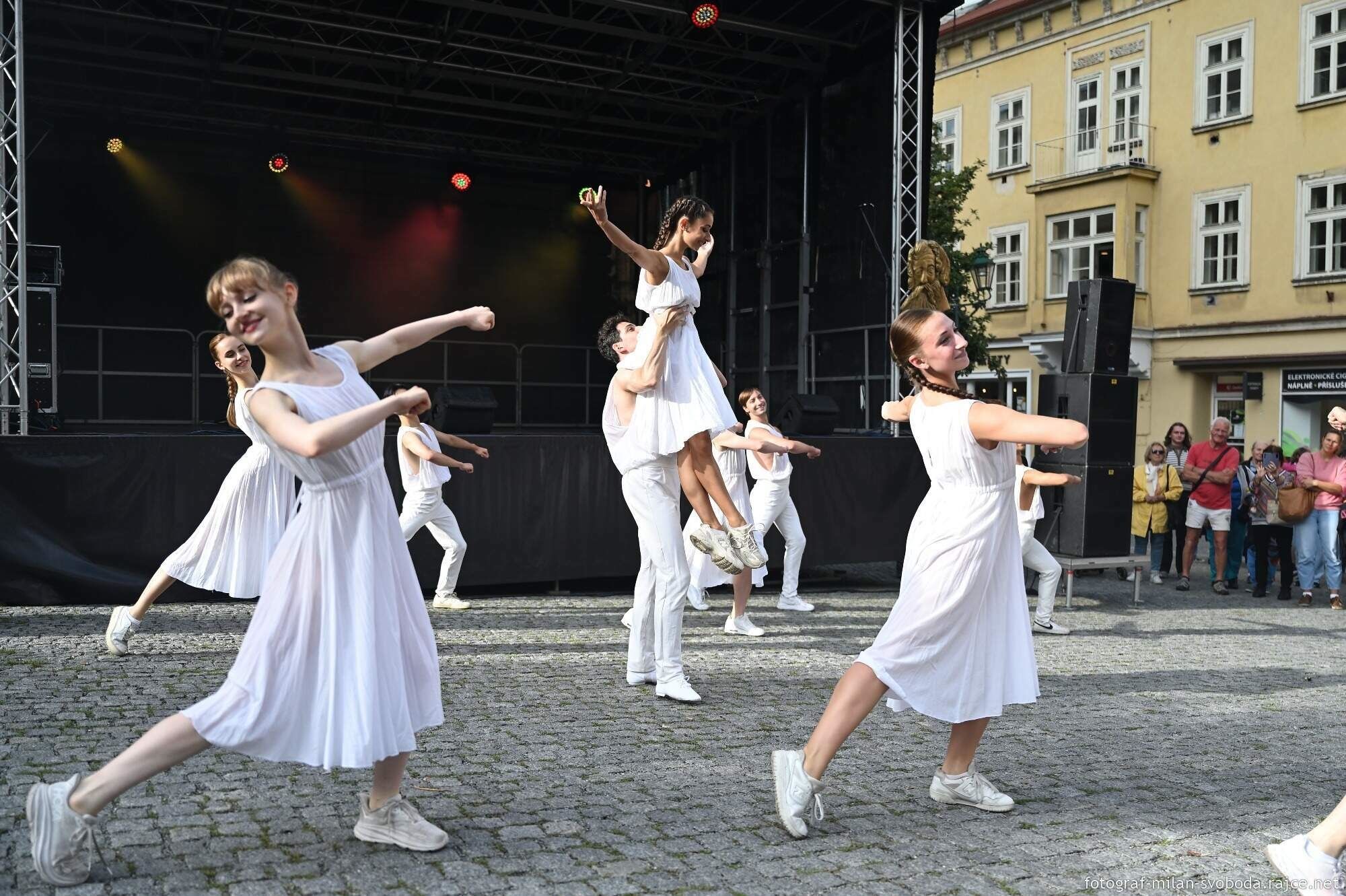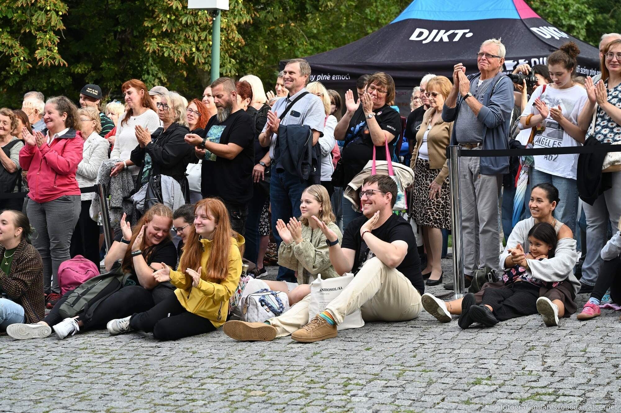 Před Velkým divadlem pak na návštěvníky čekal pestrý program všech čtyř souborů DJKT. Diváci si užili ukázky z oper Trubadúr a Prodaná nevěsta, balet Špalíček, melodram Vodníček i výběr z muzikálů. Nezapomnělo se ani na malé diváky, kteří se bavili na divadelní stezce s úkoly a odměnami.