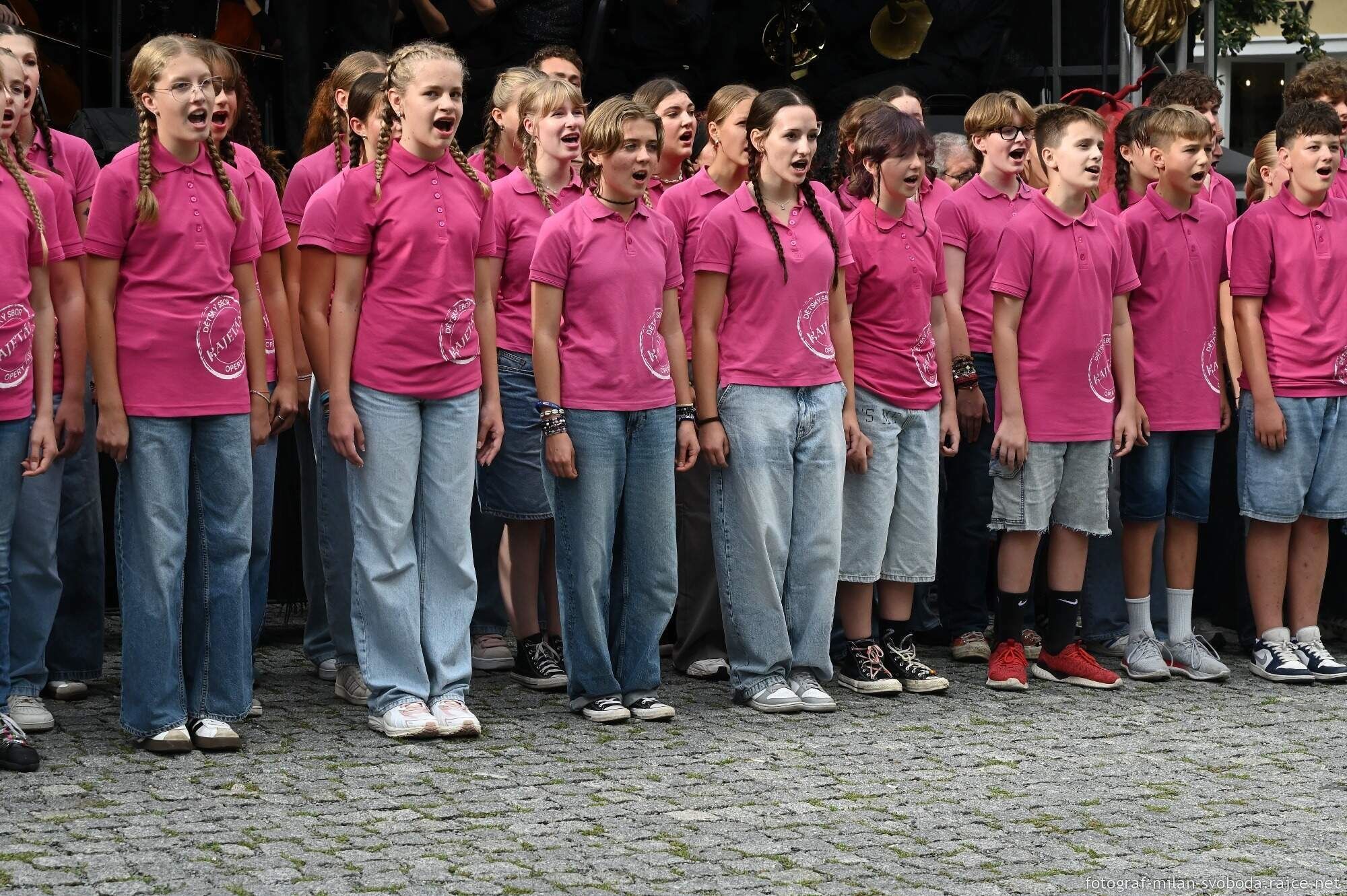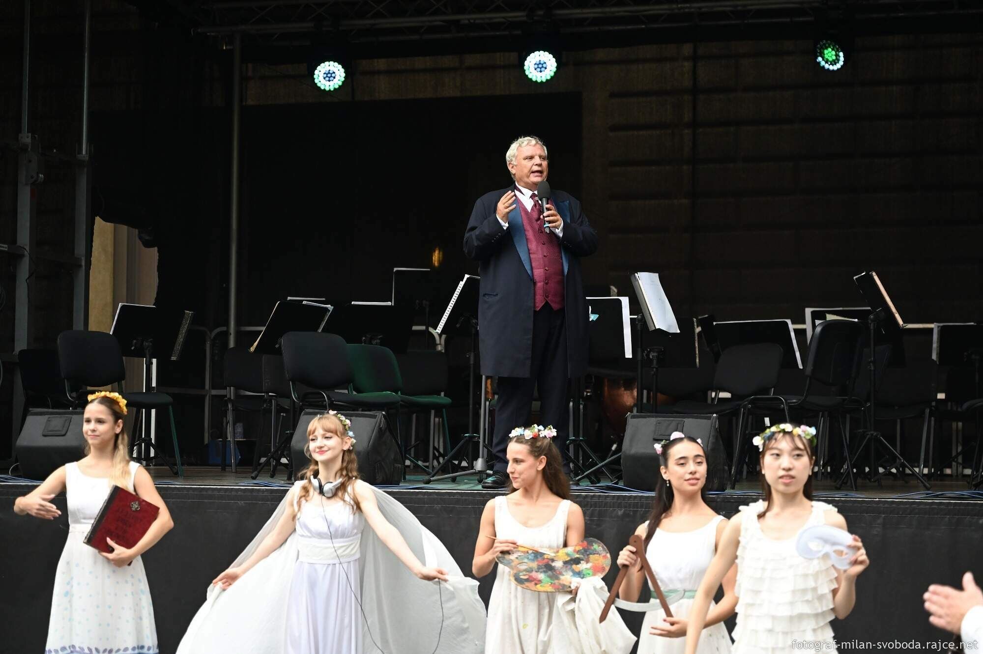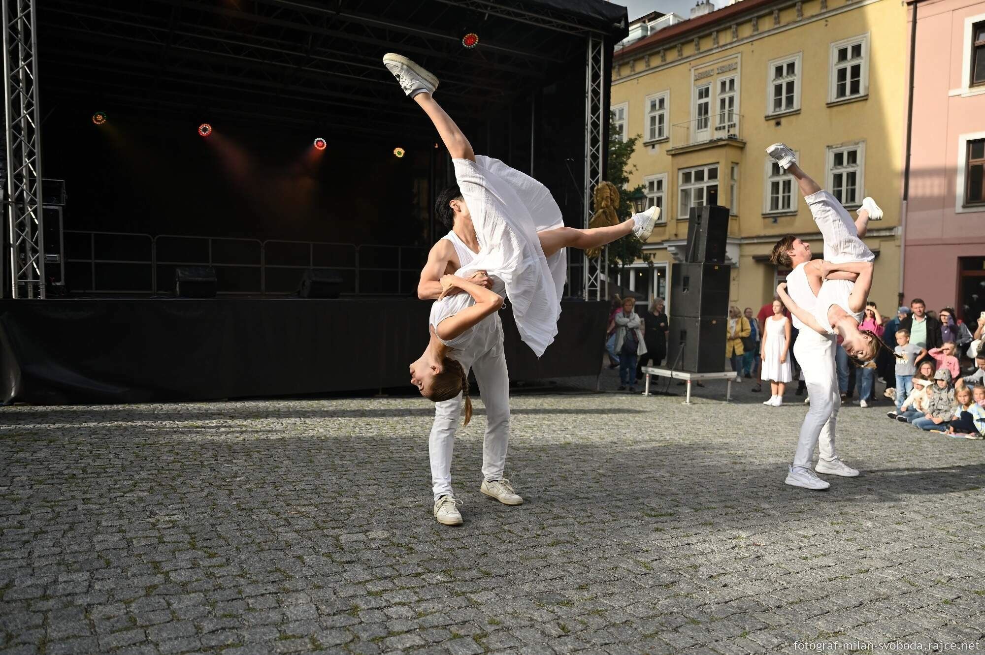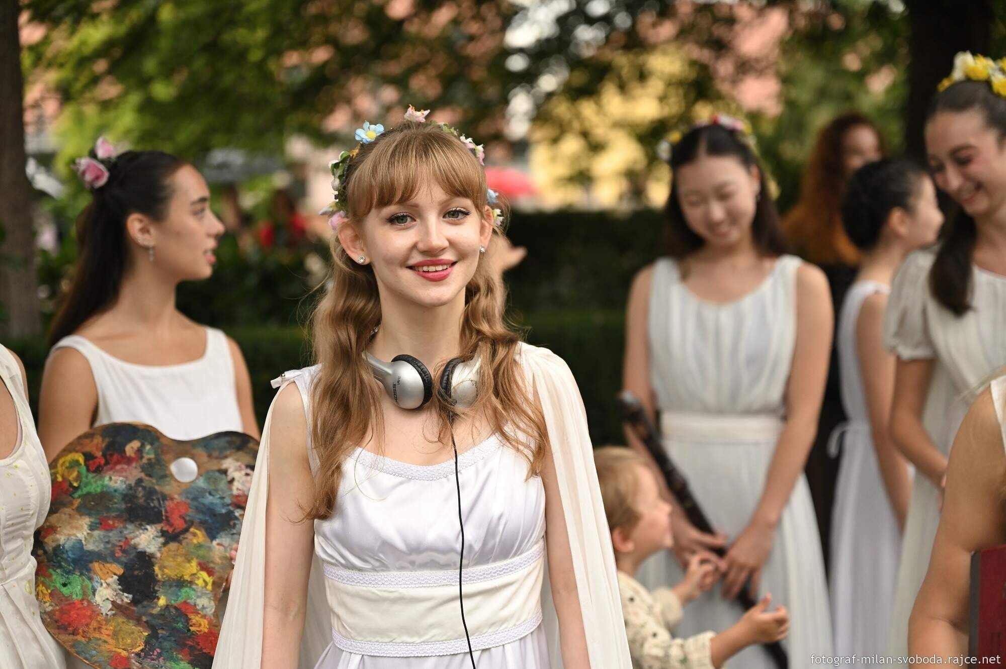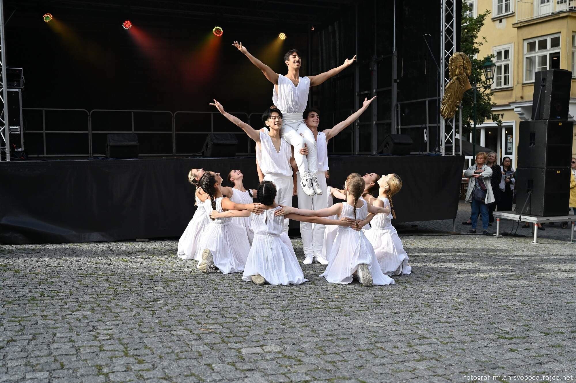 Před Velkým divadlem pak na návštěvníky čekal pestrý program všech čtyř souborů DJKT. Diváci si užili ukázky z oper Trubadúr a Prodaná nevěsta, balet Špalíček, melodram Vodníček i výběr z muzikálů. Nezapomnělo se ani na malé diváky, kteří se bavili na divadelní stezce s úkoly a odměnami.