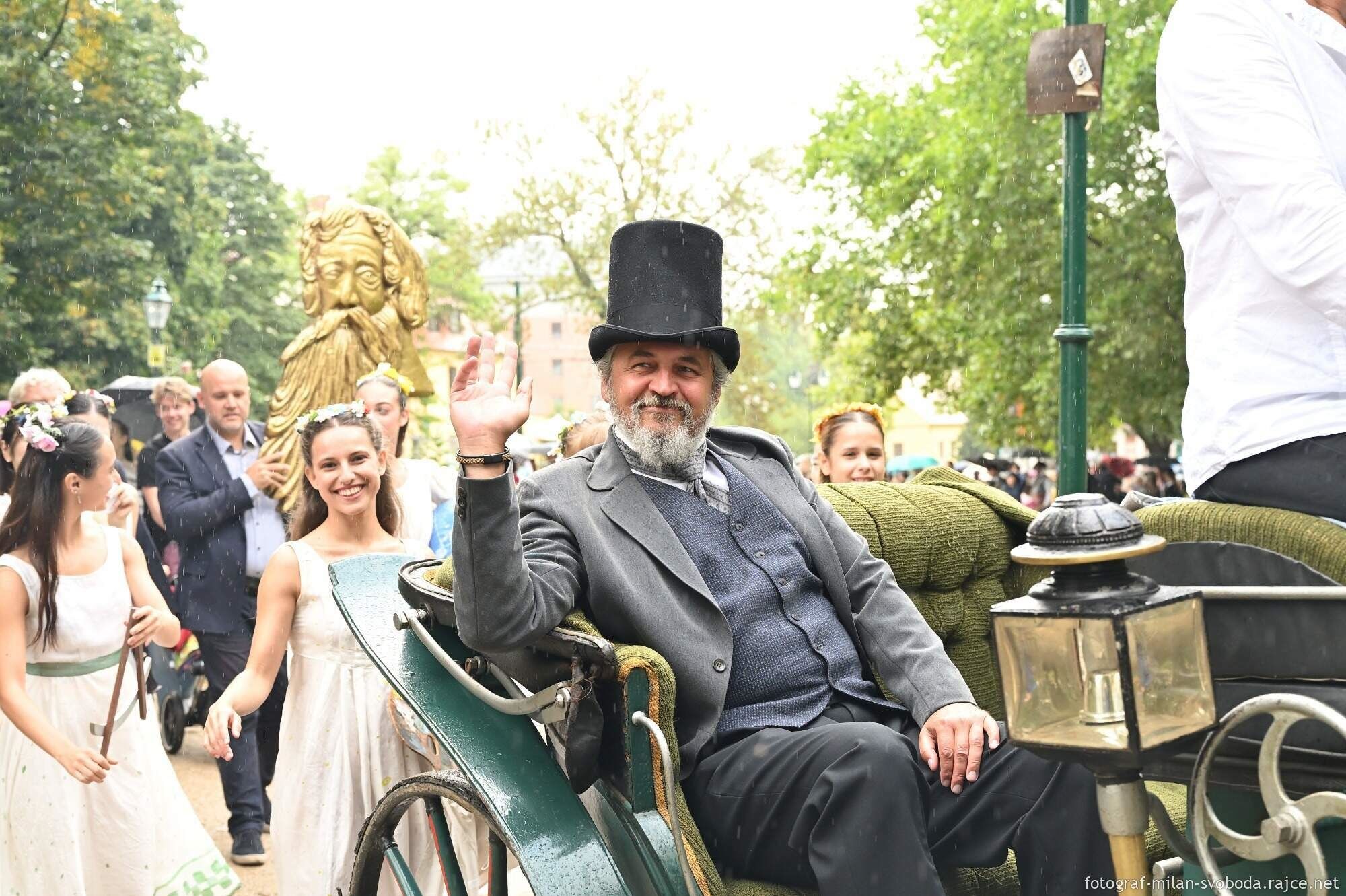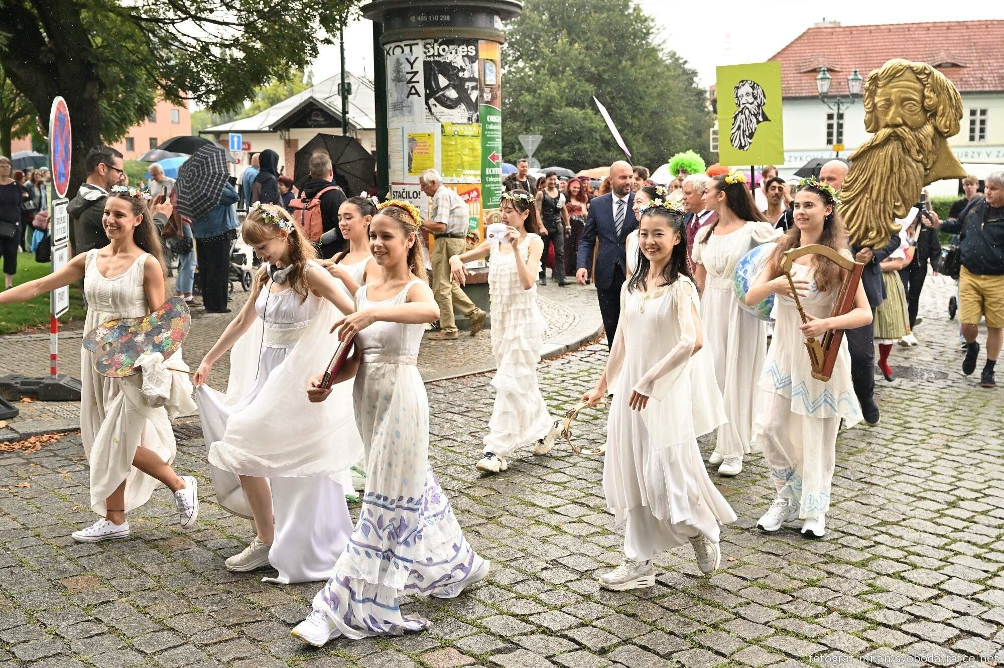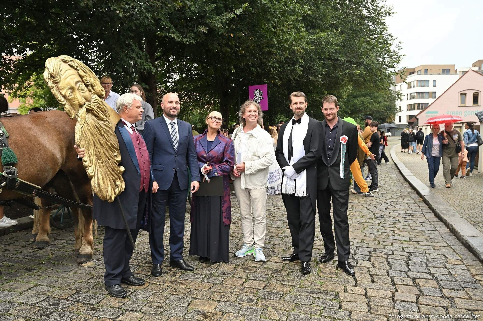 Ani déšť a zamračená obloha neodradily v úterý 2. září 2025 příznivce plzeňského divadla, kteří se připojili k veselému Průvodu Vendelín, který vedl od Mlýnské strouhy k Velkému divadlu. V čele nechyběl Vendelín Budil, tentokrát v podání oblíbeného herce Zdeňka Hrušky.