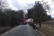 Tachovští dopravní policisté pátrají po neznámém řidiči, který způsobil nehodu u obce Výškov a z místa ujel. Kvůli jeho riskantnímu manévru skončil nákladní automobil s návěsem v příkopu, kde zůstal viset na mostku.