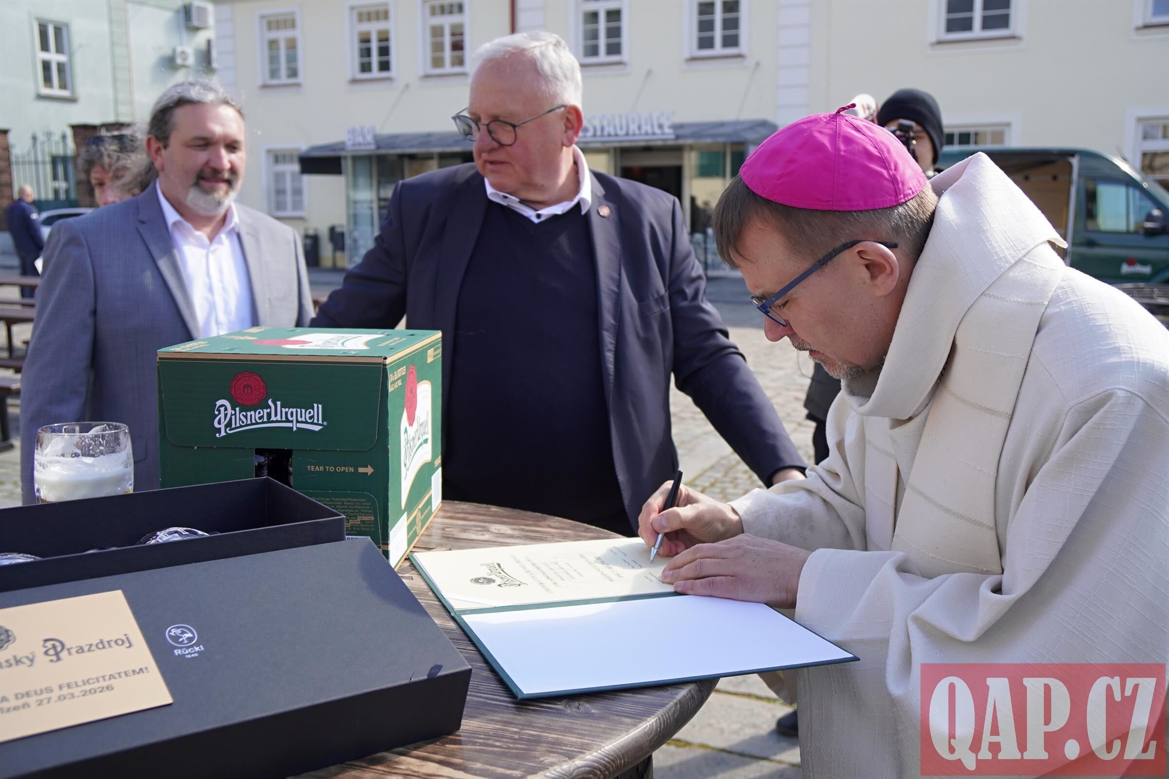 V pátek 27. března dopoledne se nádvoří Plzeňského Prazdroje zaplnilo hosty. Důvod byl jasný – tradiční odesílání velikonočního daru do Vatikánu. Letošní rok je výjimečný, pivo k papeži putuje v novodobé historii už po patnácté. Symbolicky podle aktuálního letopočtu vyrazilo na 1300 kilometrů dlouhou cestu přesně 2026 lahví ležáku Pilsner Urquell.