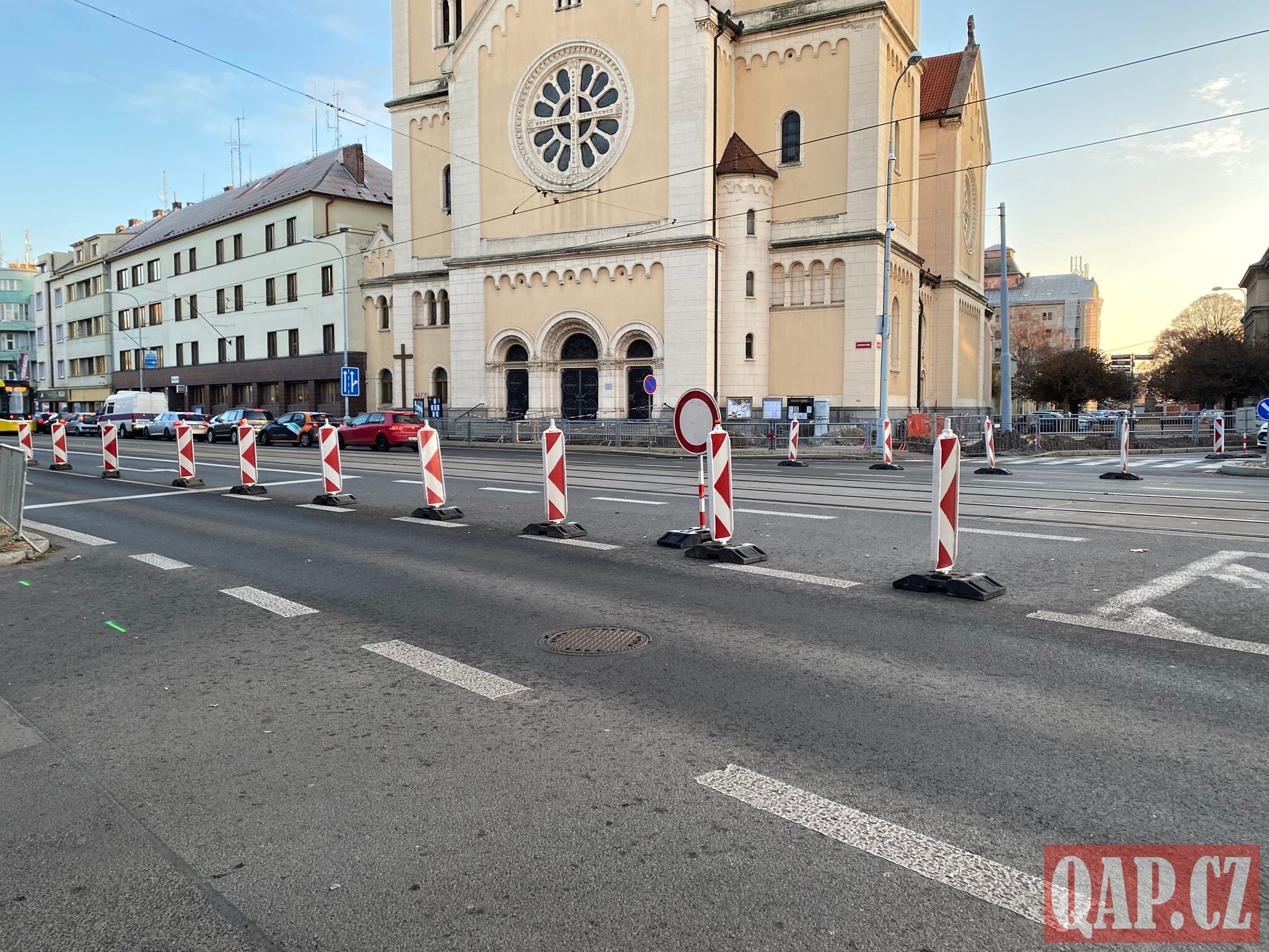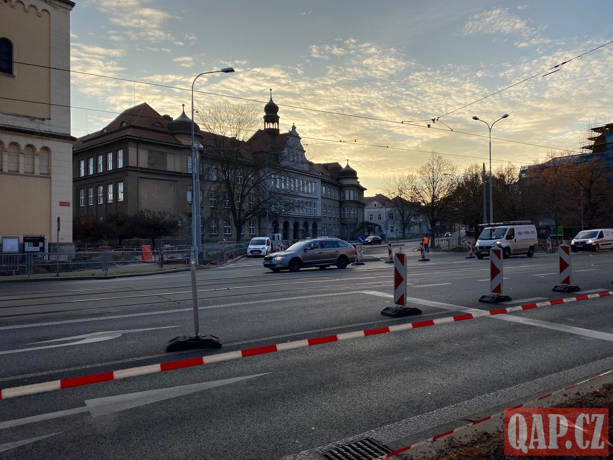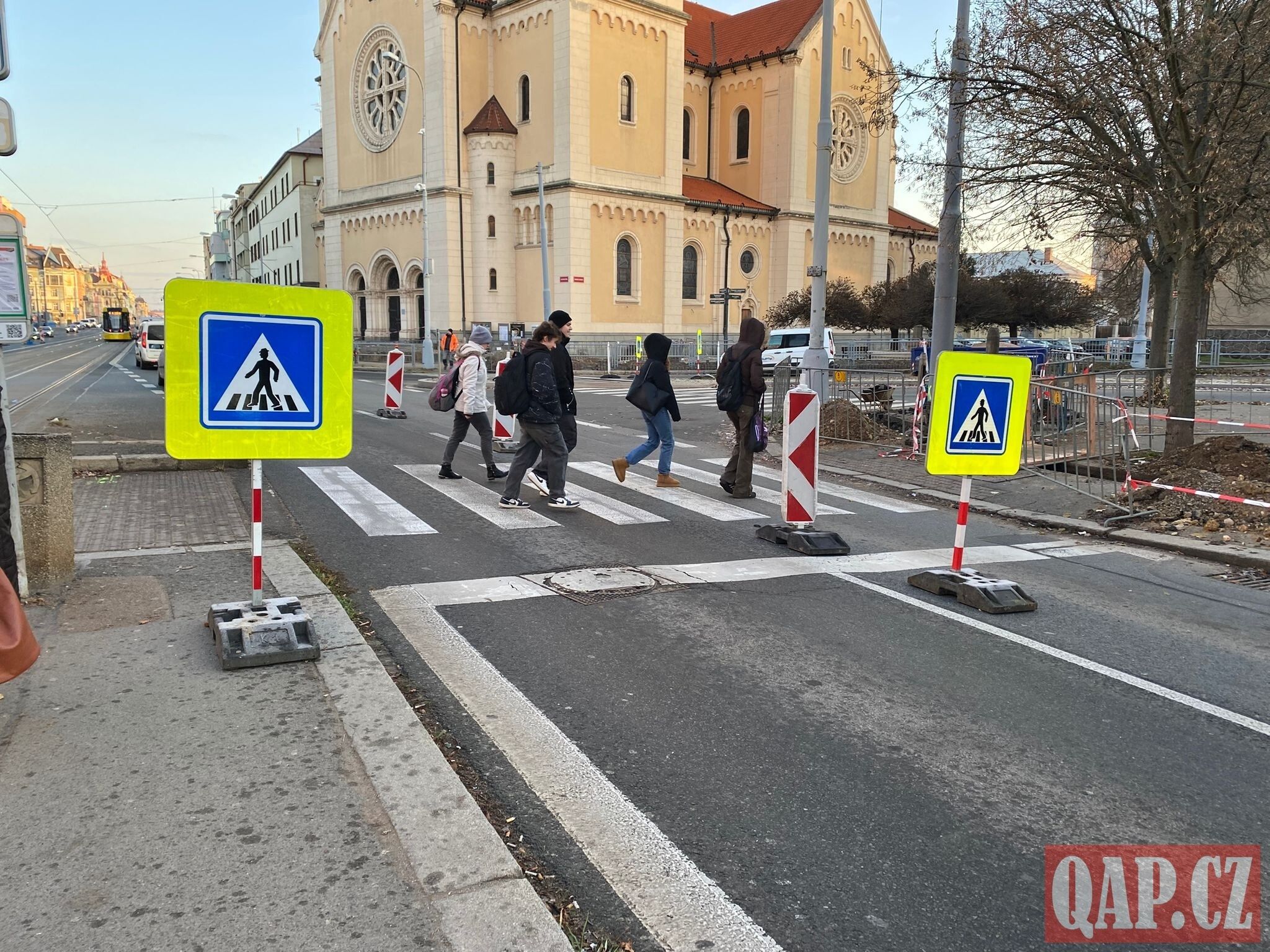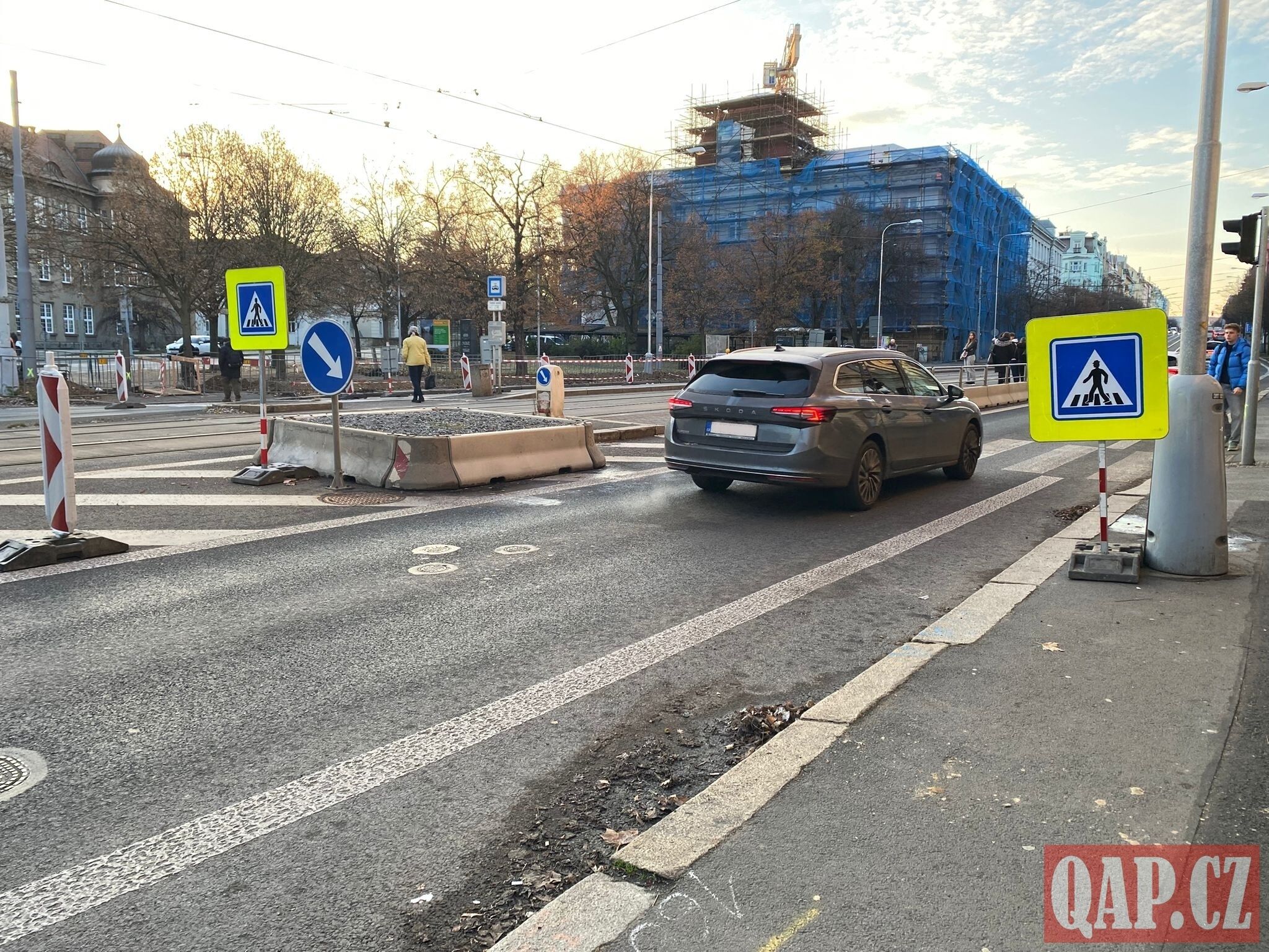 Pro vozidla přijíždějící ve směru do centra je v místě přechodu u tramvajových zastávek zúžen provoz do jednoho pruhu, aby byla zajištěna větší bezpečnost chodců.
