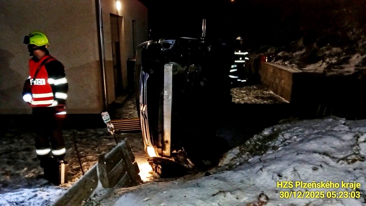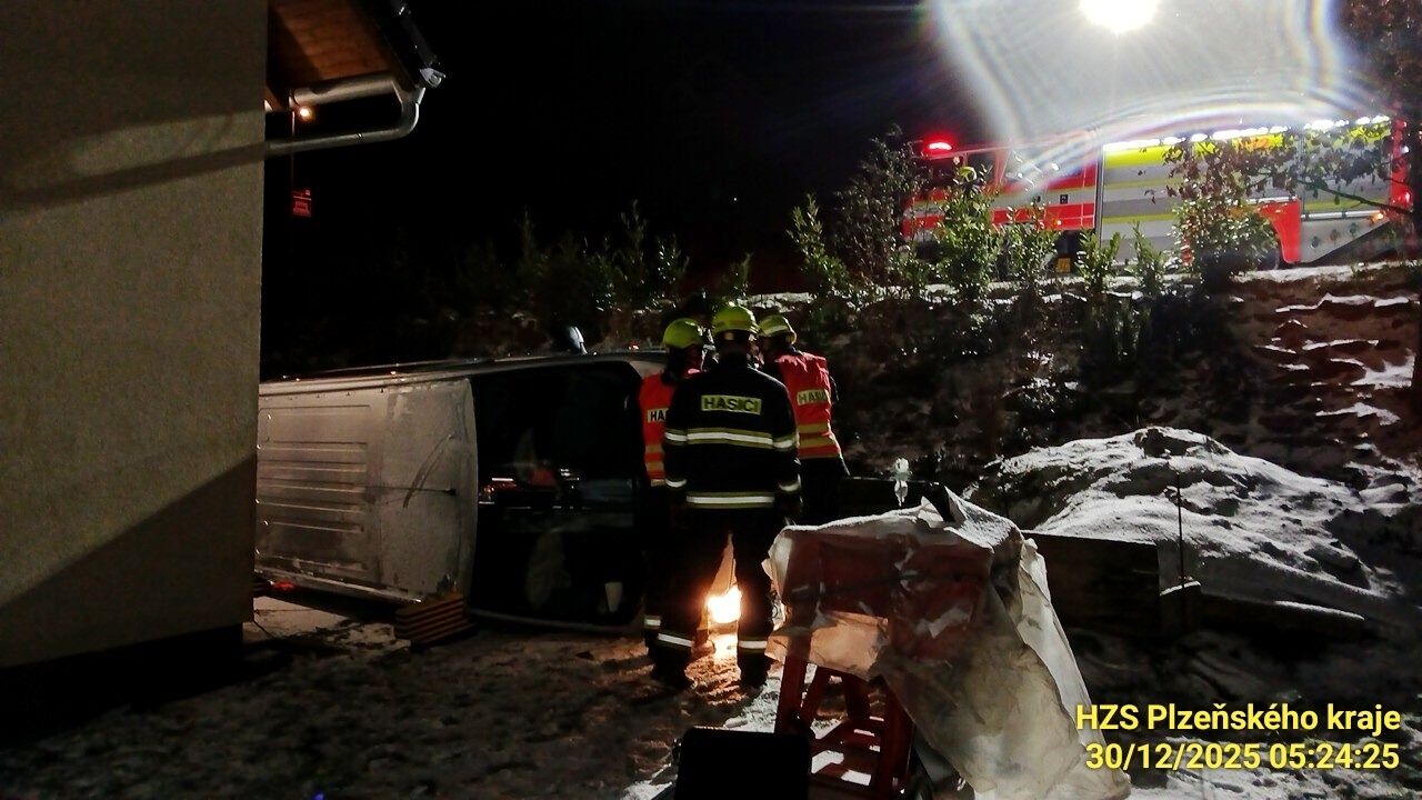 „Zasahovali jsme u dopravní nehody dodávky, která skončila na pozemku rodinného domu. Ve voze cestovaly čtyři osoby, jedna z nich skončila v péči ZZS. Zajistili jsme místo nehody a provedli protipožární opatření. Vyproštění nebylo potřeba,“ uvedl mluvčí hasičů Petr Poncar.