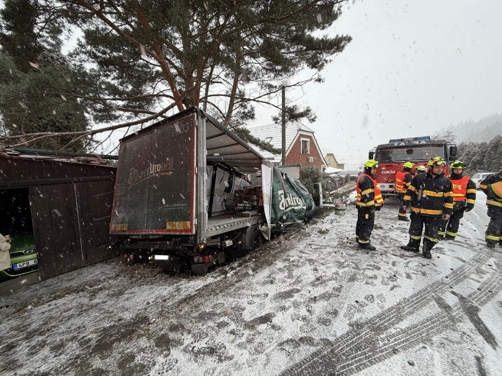 Plzeňským krajem se od rána valí vlna dopravních nehod nákladních vozidel. Nepříznivé počasí doprovázené silným větrem a sněhovými jazyky si vyžádalo hned několik zásahů složek IZS. Řidiči musí počítat s úplnými uzavírkami hlavních tahů u Nepomuku i na Tachovsku, kde probíhá vyprošťování havarovaných souprav. Jeden řidič skončil v nemocnici.