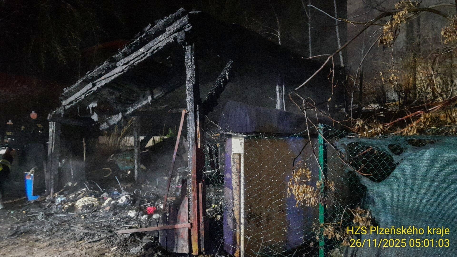 „Po příjezdu na místo hasiči zjistili, že se jedná o požár dřevěného přístřešku (boudy) o rozměrech přibližně 6x6 metrů, který s největší pravděpodobností sloužil jako dočasné bezdomovecké ležení,“ uvedl mluvčí hasičů Michal Holeček.