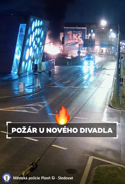 Ve středu 26. listopadu v 4:07 vyjížděla jednotka Hasičského záchranného sboru Plzeňského kraje ze stanice Plzeň-Střed k hlášenému požáru na Palackého náměstí v Plzni. Nedaleko divadla hořel dřevěný přístřešek.