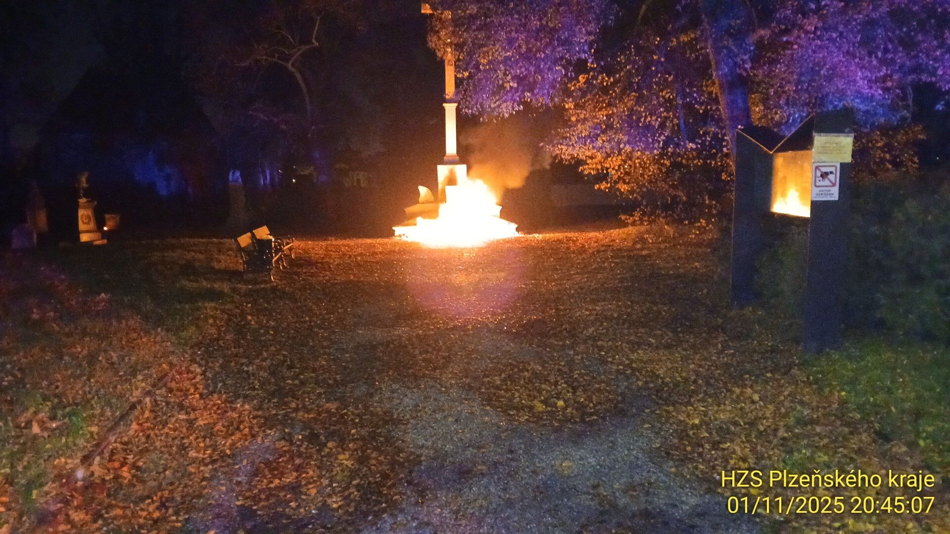 „V souvislosti s Dušičkami jsme řešili jediný požár, a to na Mikulášském hřbitově v Plzni, kde v sobotu 1. listopadu došlo k požáru svíček u centrálního kříže,“ uvedl Petr Poncar, mluvčí krajských hasičů.
