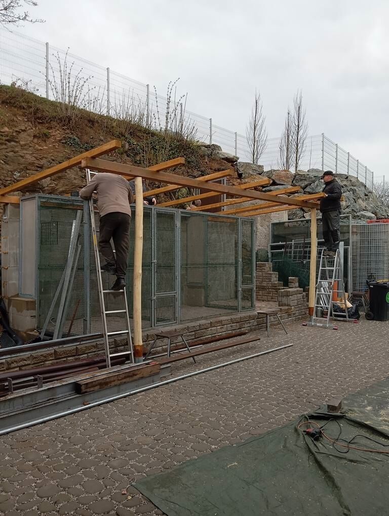 V sobotu 4. dubna probíhaly práce na venkovní učebně a zastřešení expozičních voliér.