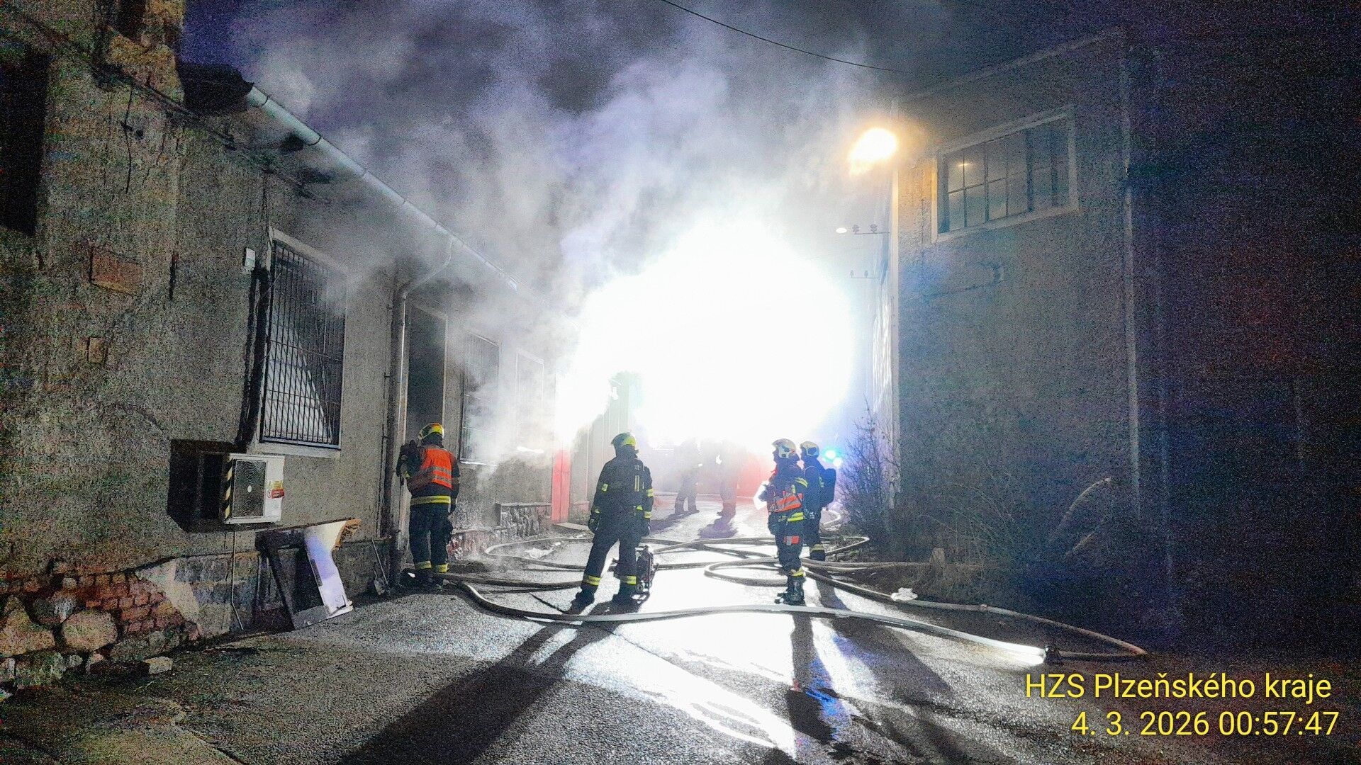 Plzeňští hasiči mají za sebou náročný noční zásah. V Jateční ulici vypukl v noci na středu 4. března požár.