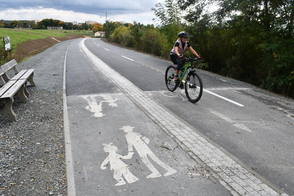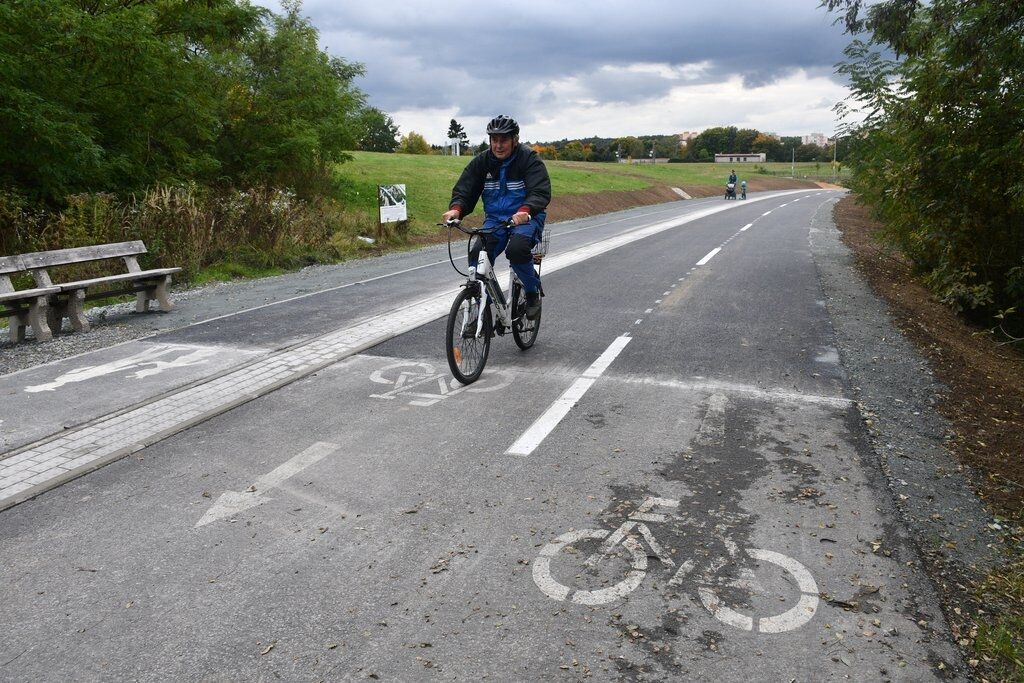 Náměstek upřesnil, že na osm metrů širokém pásu tělesa bývalé železniční tratě je nyní stezka v šíři 5,5 metru, z toho 3,5 metru je vyhrazeno pro cyklisty, další dva metry oddělené hmatným pásem pak pro pěší. „Zbývající dva šířkové metry krajnice mají štěrkový povrch. Oddělený provoz pěších a cyklistů tak je pro všechny uživatele bezpečnější. O tom se mnozí z nich již přesvědčili na loni dokončeném úseku,“ dodal Aleš Tolar.