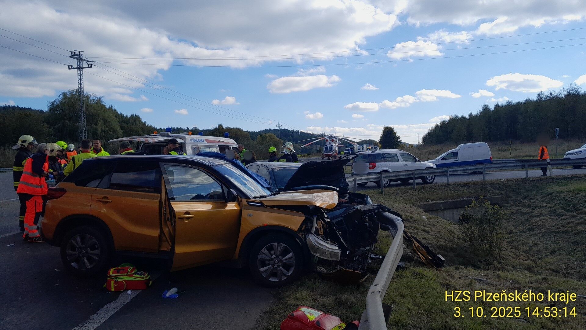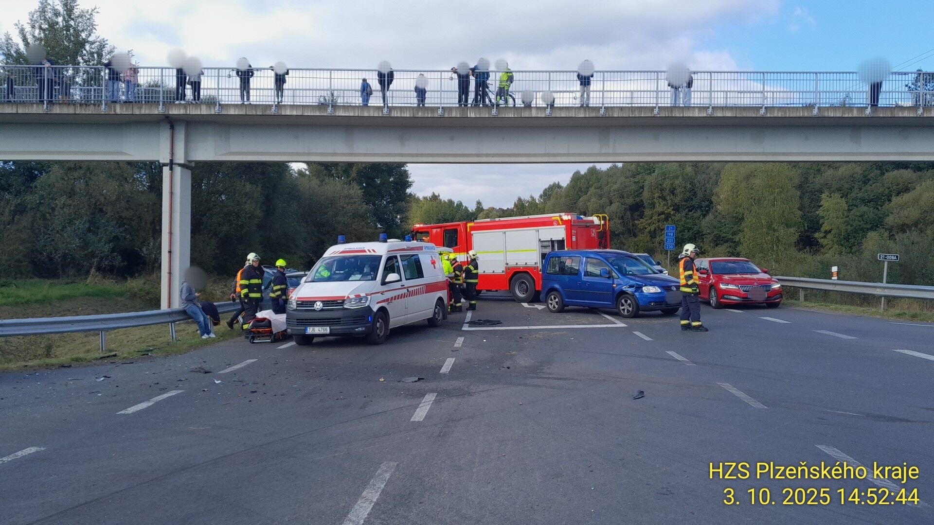"Na místě zasahovaly výjezdové skupiny RV, dvě RZP a LZS AČR z Líní. Jednasedmdesátiletý muž byl ošetřen a následně letecky transportován kolegy z LZS s poraněním hrudníku. Pozemní cestou byla transportována osmasedmdesátiletá žena, pětadvacetiletý muž a třiadvacetiletá žena, všichni s pohmožděninami v oblasti hrudníku a břicha," uvedla Karolína Korčíková ze záchranné služby.