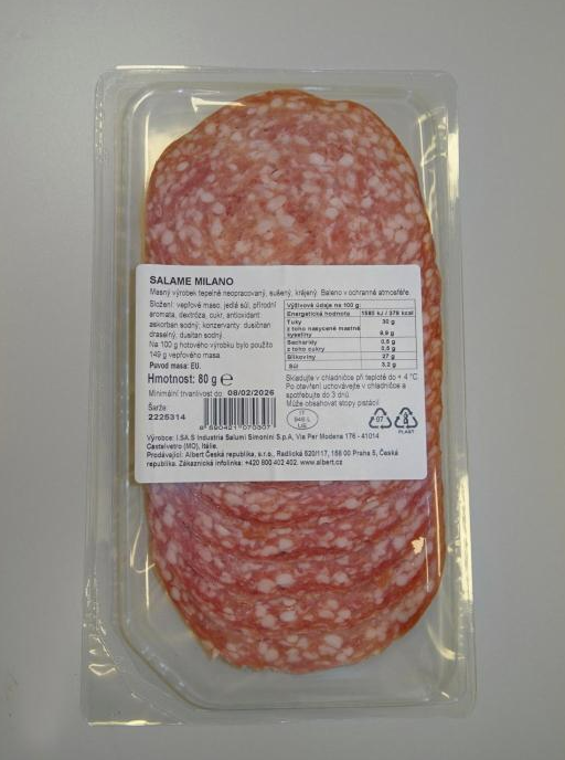 U sušeného salámu značky Excellent EVERYDAY SPECIAL SALAME MILANO (šarže: 2225314, DMT: 08/02/2026) z Itálie byl zjištěn nižší podíl vepřového masa.