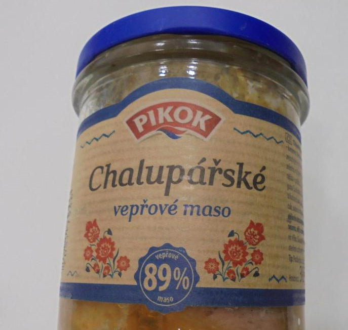 V případě konzervy Chalupářské vepřové maso Pikok (šarže L 509717, DMT: 14.10.2027) z Polska byl problém obdobný.