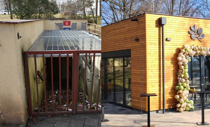 V naší fotogalerii se můžete podívat, jak neuvěřitelnou proměnou místo prošlo – od betonového skeletu zapomenutých toalet až po designovou kavárnu s letní terasou.