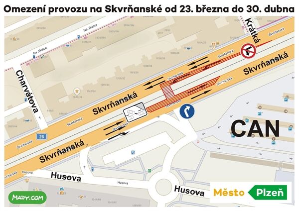 - V této krátké fázi bude přesměrována nákladní doprava od Skvrňan ve směru Klatovy a ve směru Karlovy Vary ze Skvrňanské ulice do ulice Husova.