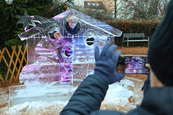 „Nechyběla ani tradiční živá ledová show, při níž vznikla ledová socha anděla a fotokoutek s ledovým Betlémem širokým více než dva metry,“ popisuje místostarosta Zdeněk Mádr. „1 metr vysoký kvádr se vyrábí 4 dny a váží 125 kilogramů. Na ledový fotopoint bylo takových kvádrů třeba osm a další kvádr jsme připravili k výrobě anděla na live show,“ dodává Lukáš Toušek z Ice Faktory.
