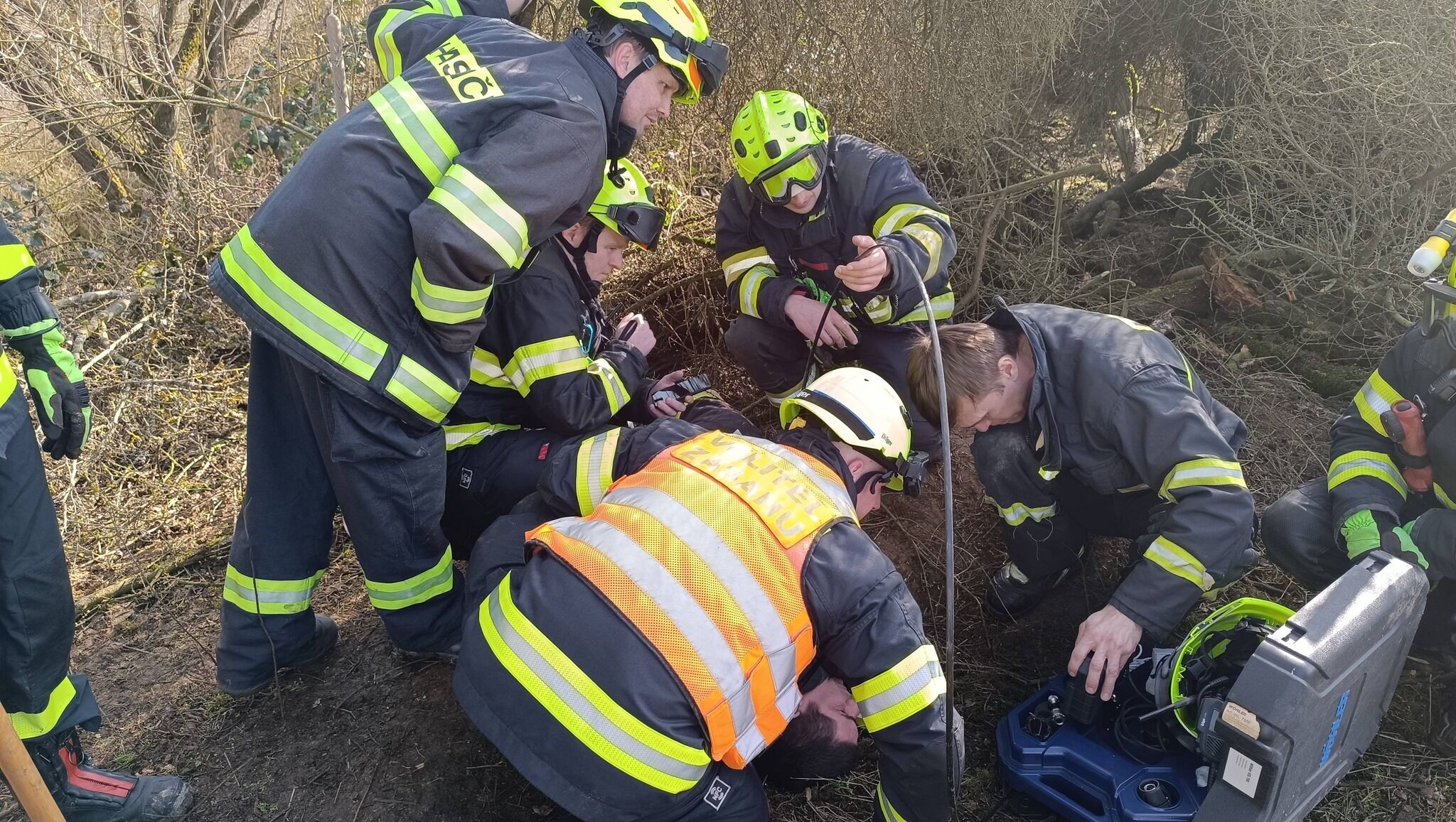 Záchranná akce v hustém lese je technicky velmi náročná. Hasiči si nejprve museli v těžko přístupném a křovinatém terénu proklestit cestu, aby se k noře vůbec dostali. Protože se pes nachází hluboko v zemi, klasické nářadí nestačilo.