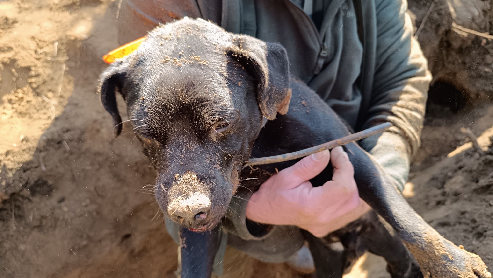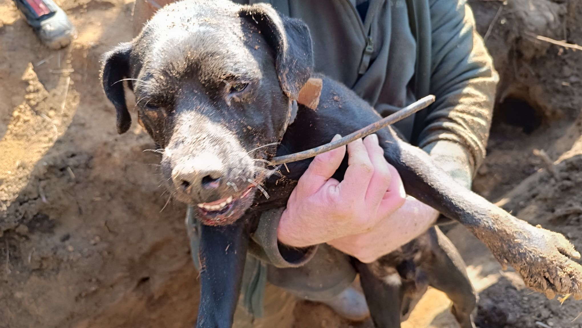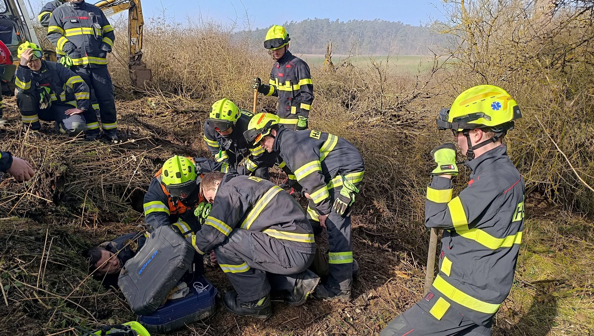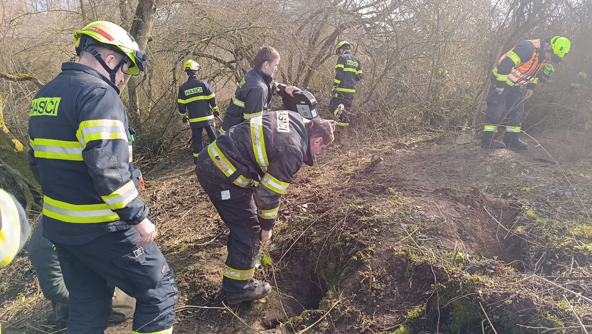 Lovecký pes uvízl v jezevčí noře, zachranili ho hasiči - FOTKY, VIDEO